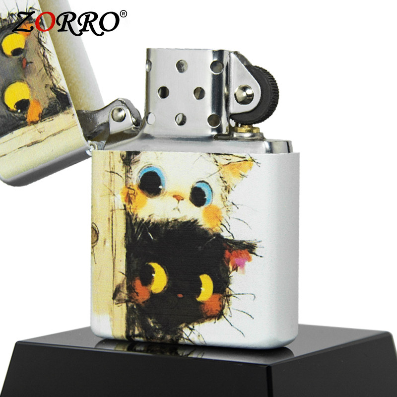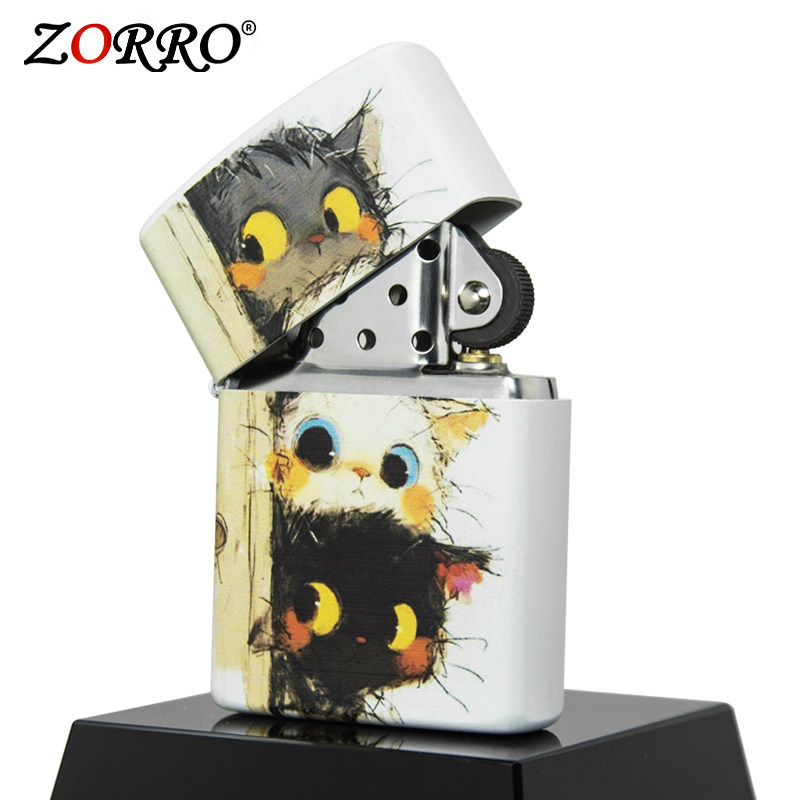 ZORRO佐罗官方正品卡通可爱叠叠猫咪高档防风煤油打火机送男友
