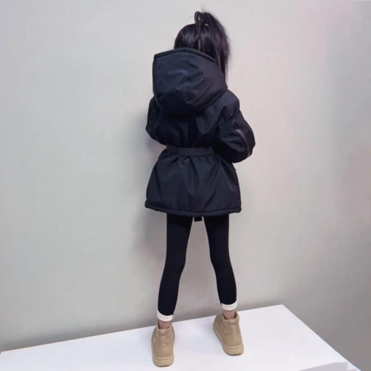 女童夹厚外套2024秋冬新款女大童中长款冲锋衣女孩兔毛加绒派克服