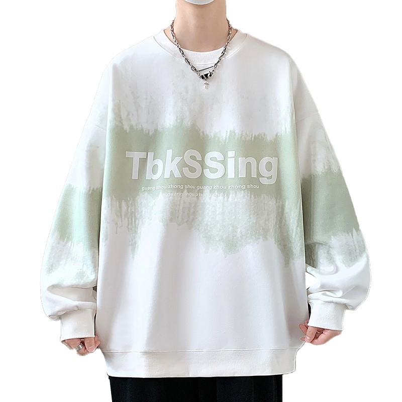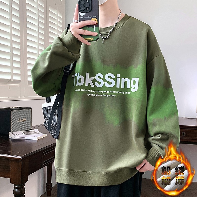渐变圆领卫衣男款2025冬加绒潮牌长袖t恤宽松帅气打底衫上衣T以純