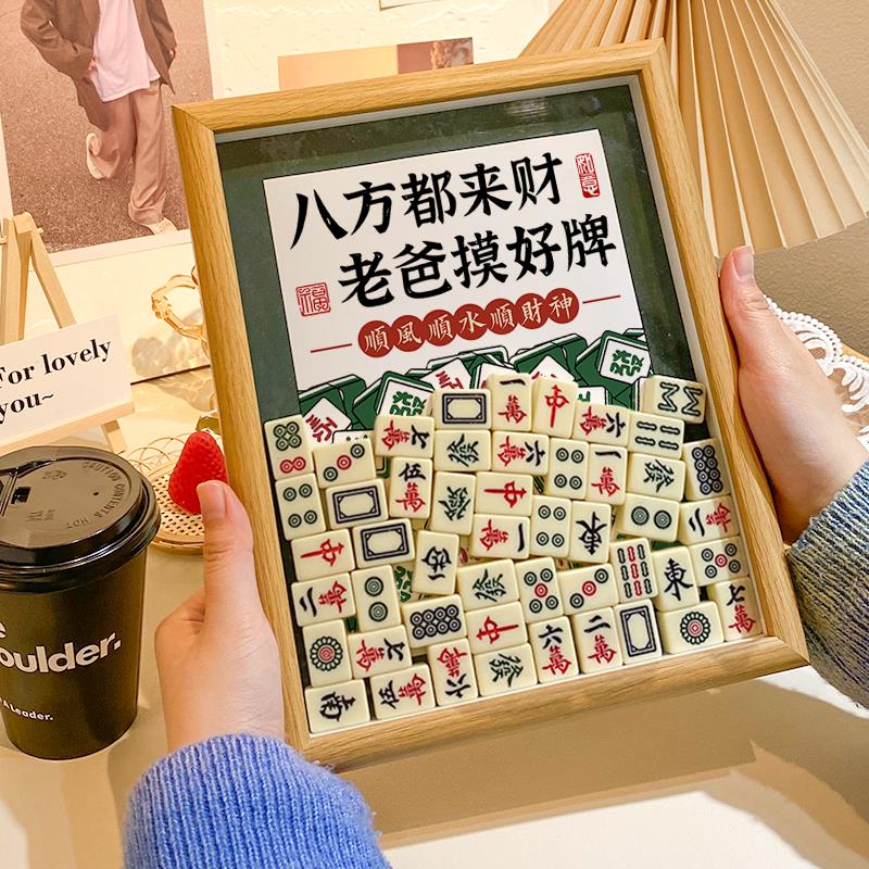 爸爸生日礼物布置实用惊喜摆件高档创意麻将相框父亲节仪式感氛围
