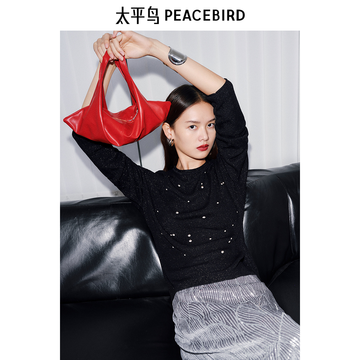 【断码秒杀】太平鸟 亮闪羊毛混纺针织衫点缀小钢珠时髦毛衣