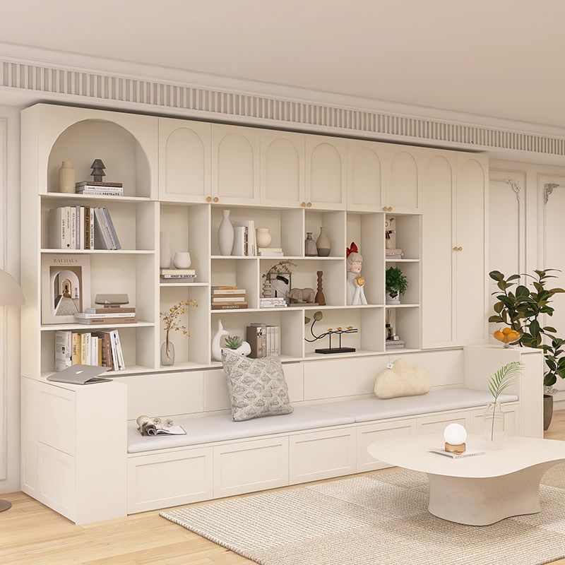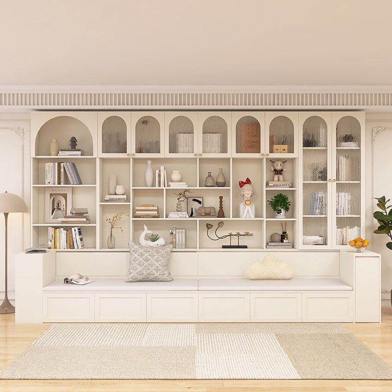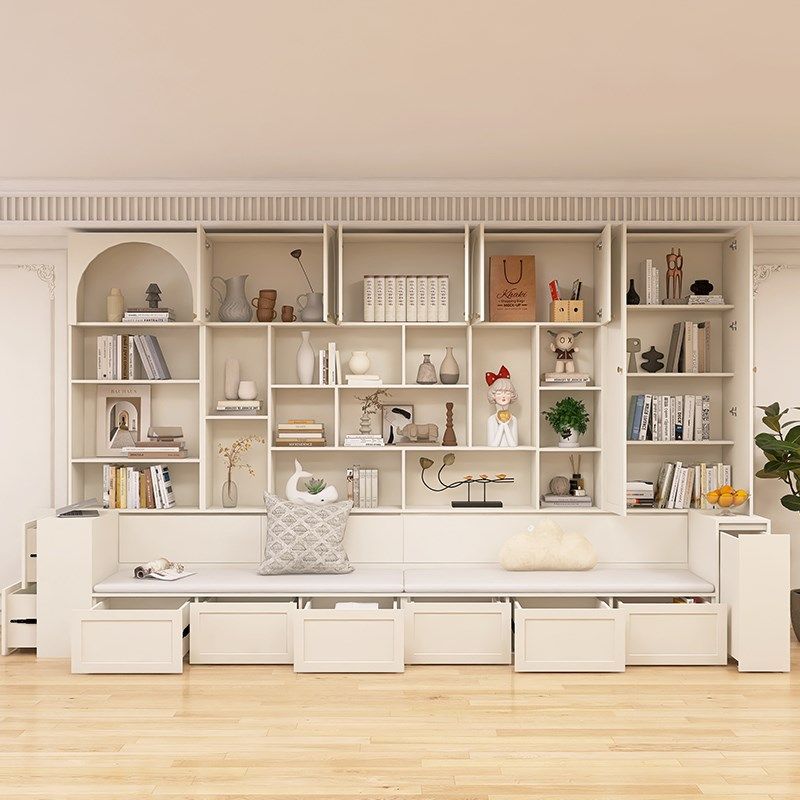 沙发储物柜一体去客厅化满墙书柜带卡座整墙到顶书架实木背景墙柜