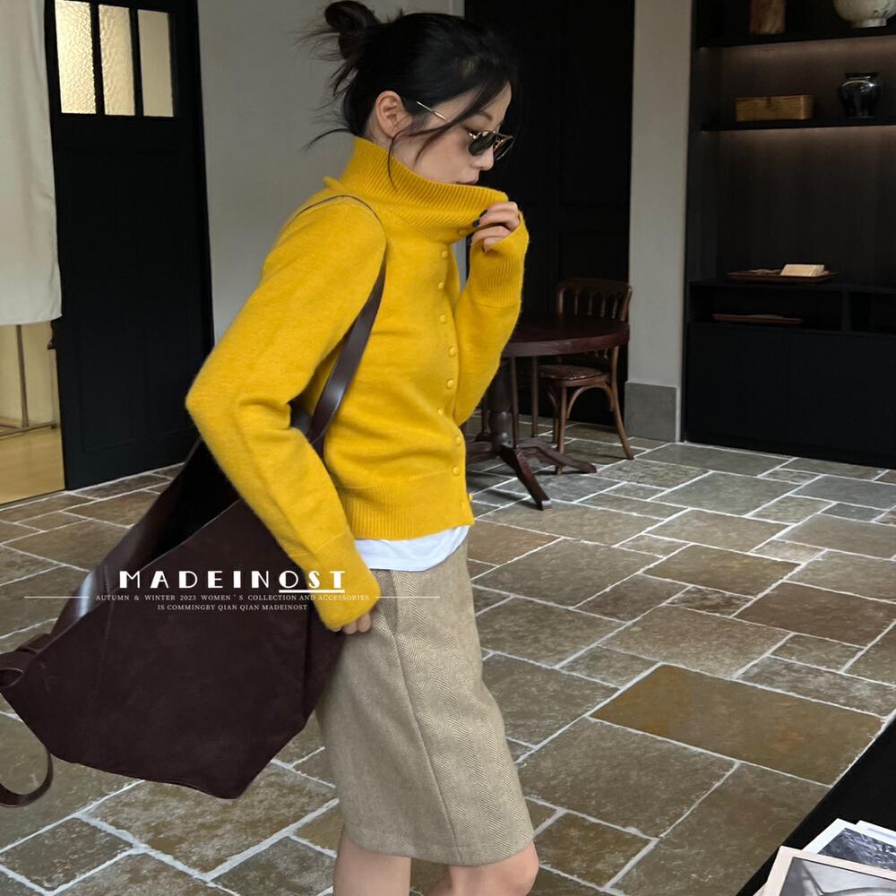 MADEINOST春季新款设计感两穿立领羊毛开衫宽松软糯毛衣短外套女