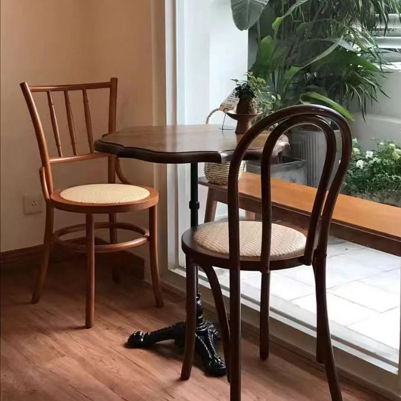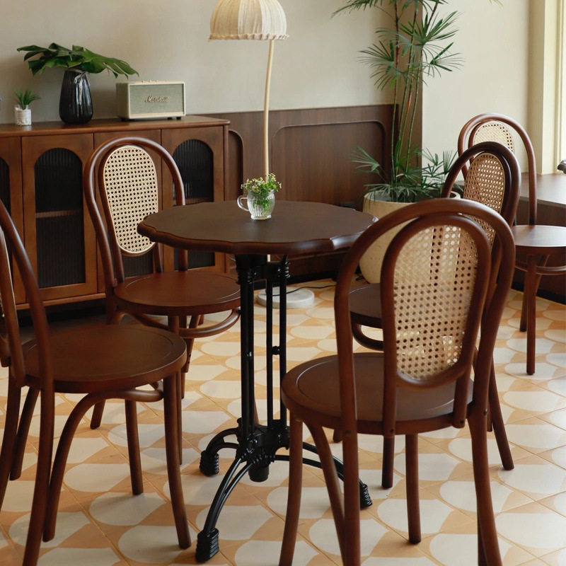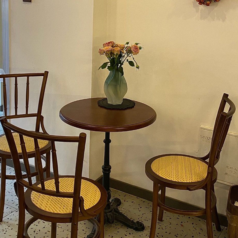 复古咖啡厅桌子餐厅成套座椅组合实木餐桌方桌西餐厅餐饮圆桌方桌