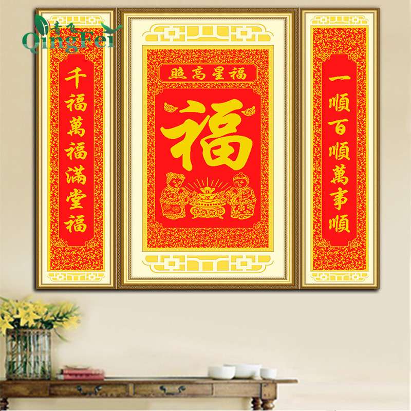 青飞5D立体福星高照十字绣祝福贺寿对联画中堂画十字绣中国钻石画