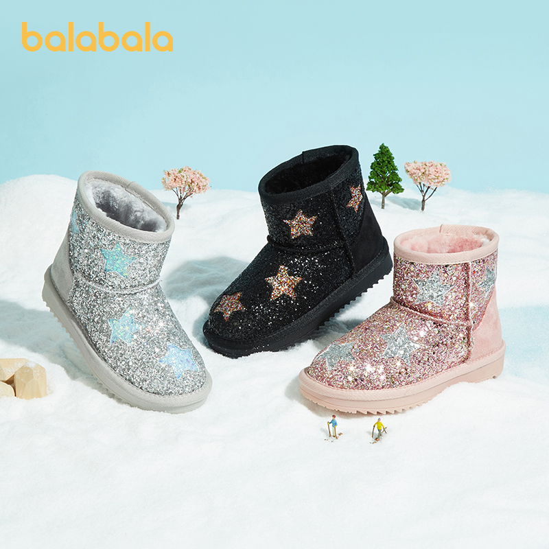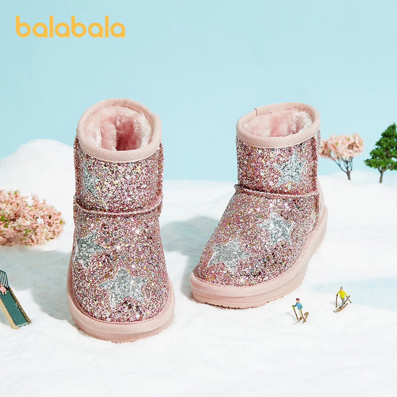 巴拉巴拉女童靴子中大童加绒加厚雪地靴儿童短靴保暖冬季新款童鞋