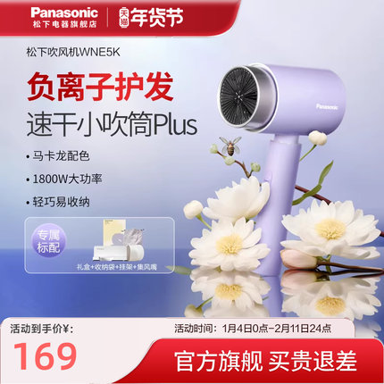 松下负离子小吹筒礼盒护发家用宿舍大风力高速速干电吹风机WNE5K