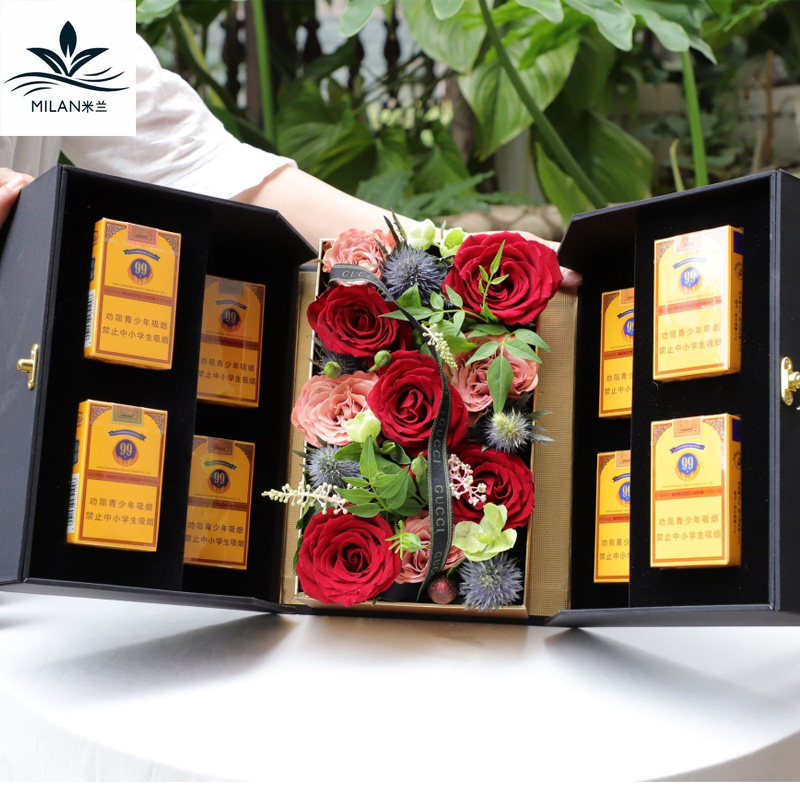 父亲节香烟礼盒手提花盒方形鲜花包装盒男士花束礼U物盒花艺惊喜