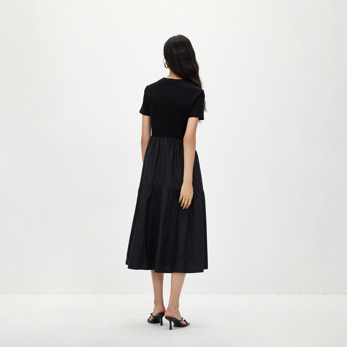 ONLY纯色拼接短袖长款连衣裙