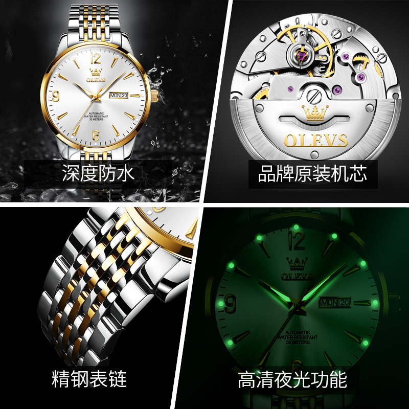 瑞士认证正品牌手表男士机械表男全自动钢带防水双日历名式款十大