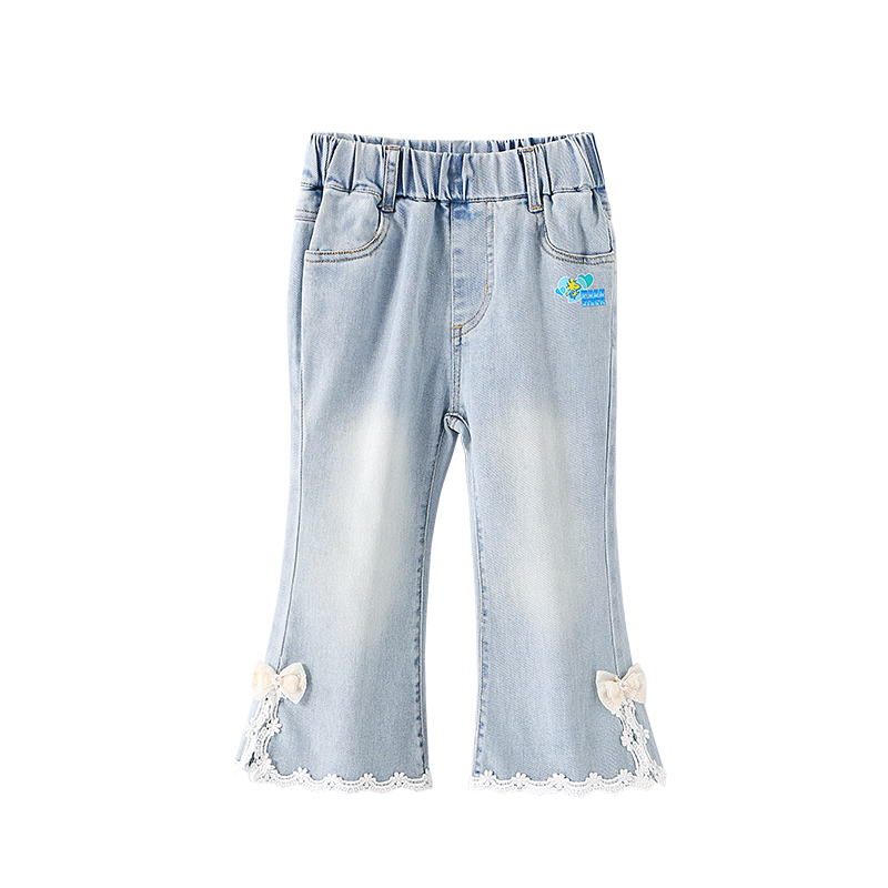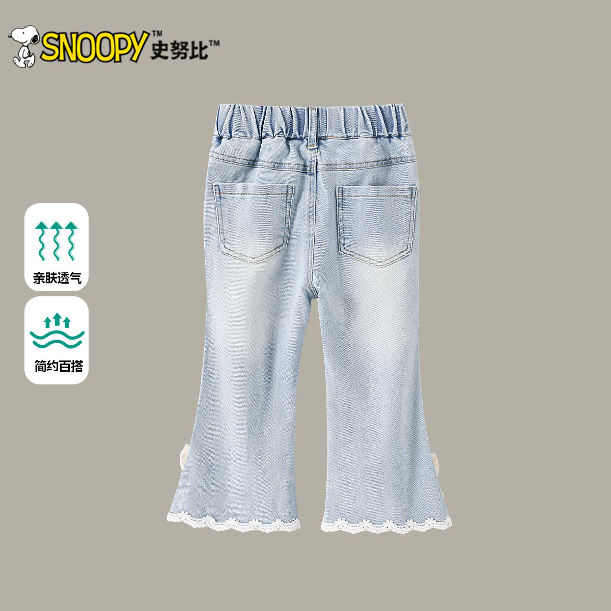 史努比女童裤子春秋2025新款儿童洋气微喇叭裤女孩高弹松紧腰长裤