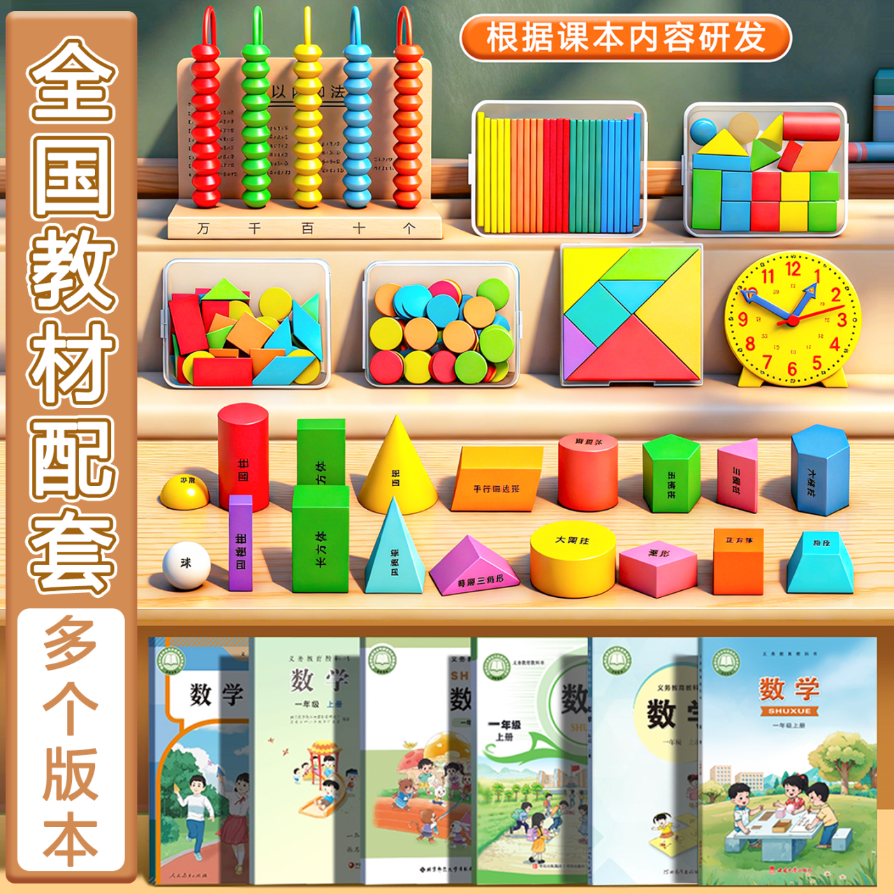 一年级数学教具下册全套学具盒小学几何体小棒学习用品套装计数器