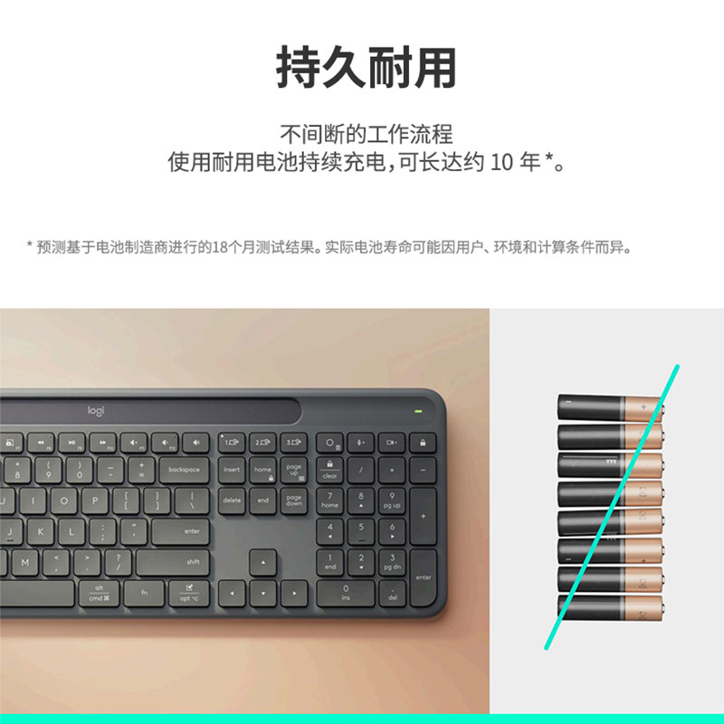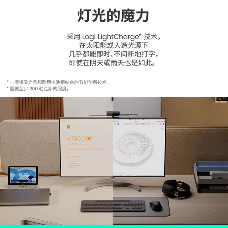 罗技官方旗舰店K980 太阳能商用无线键盘办公电脑电池蓝牙便携