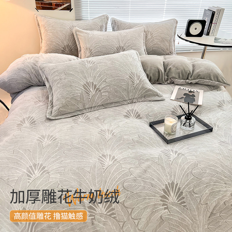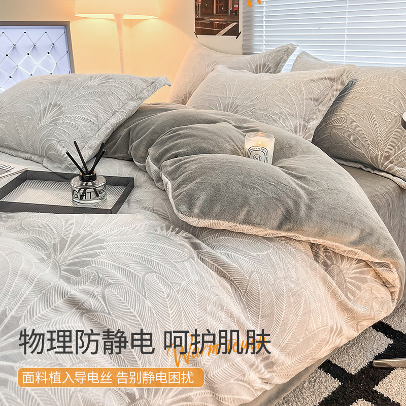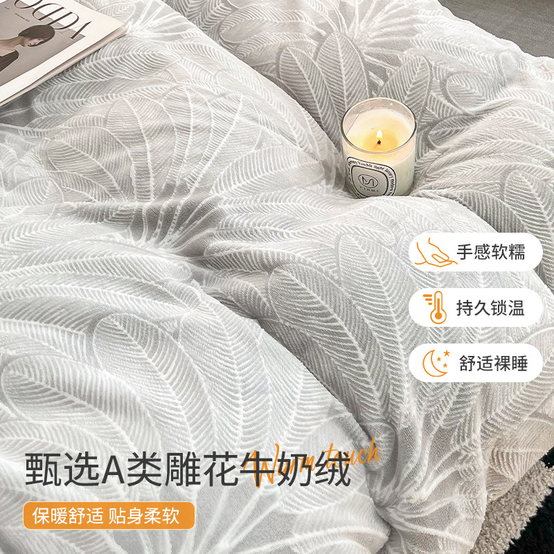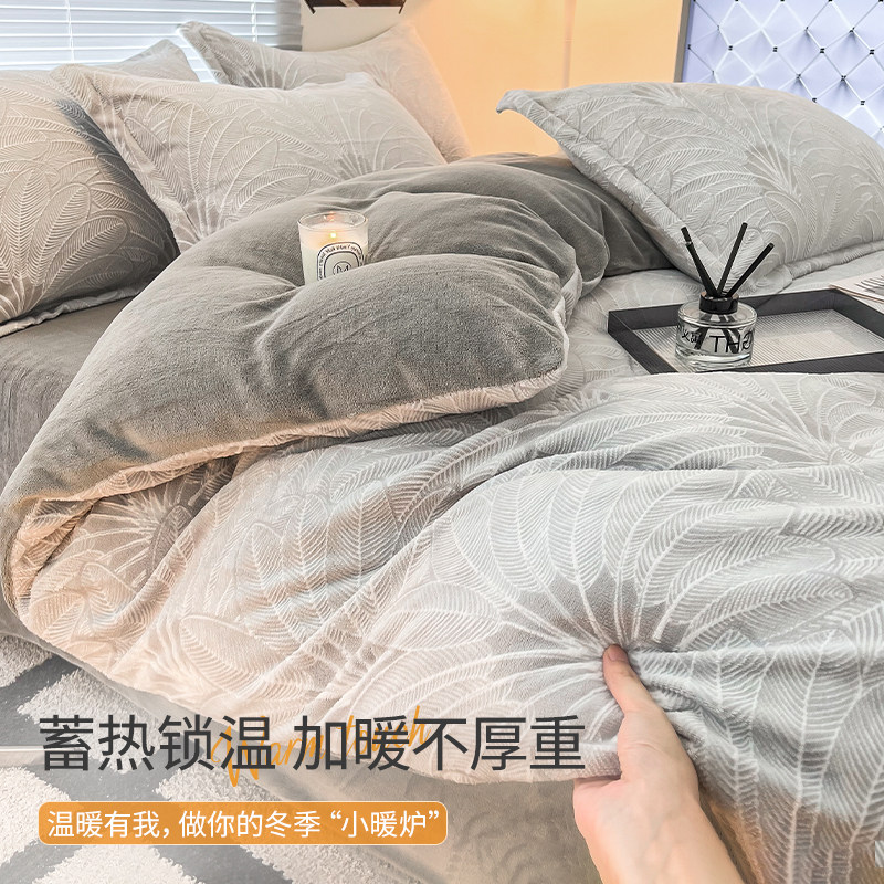 双面牛奶绒被套单件高端四件套男