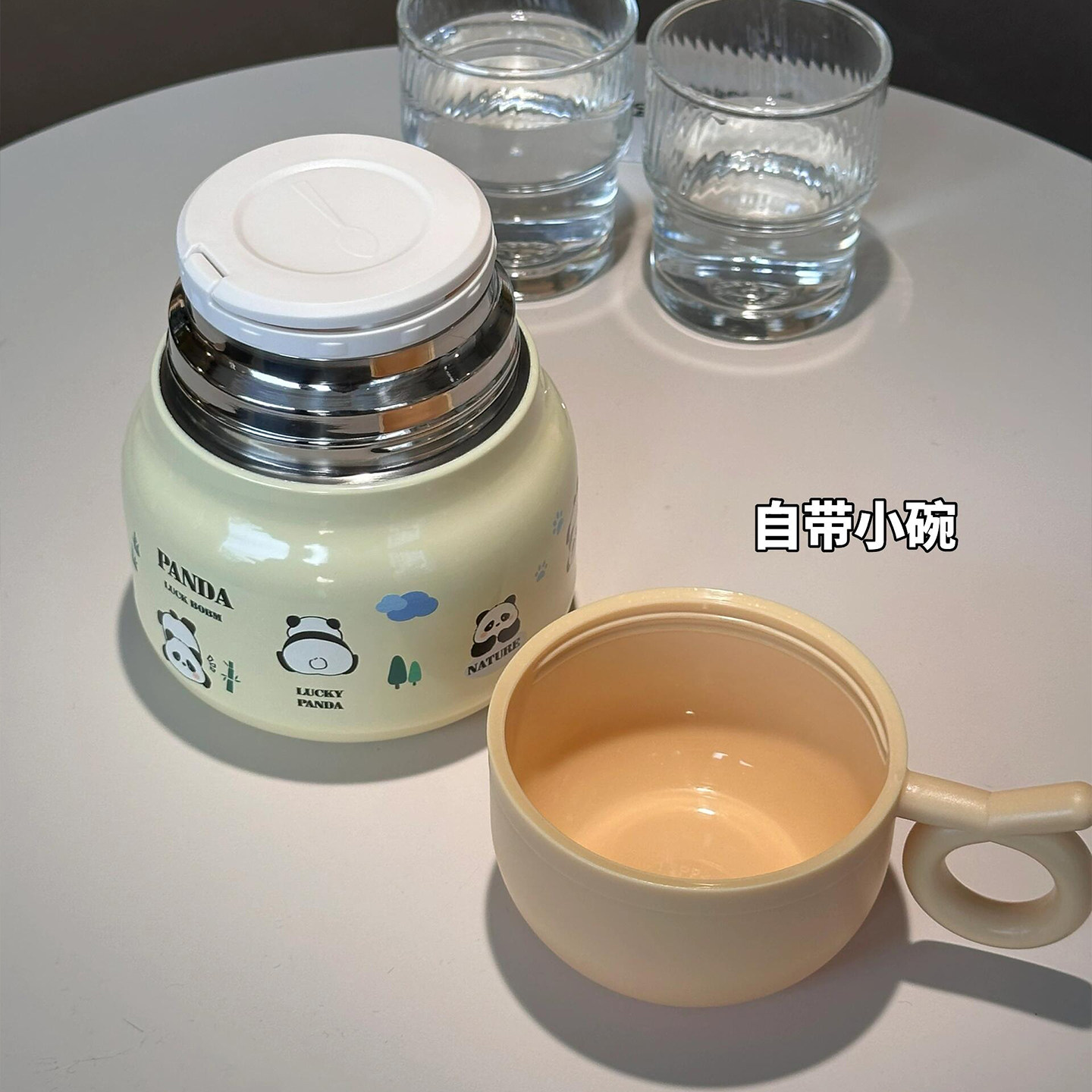 316不锈钢熊猫焖烧杯真空内胆保温杯带杯勺保温壶高颜值可爱迷你