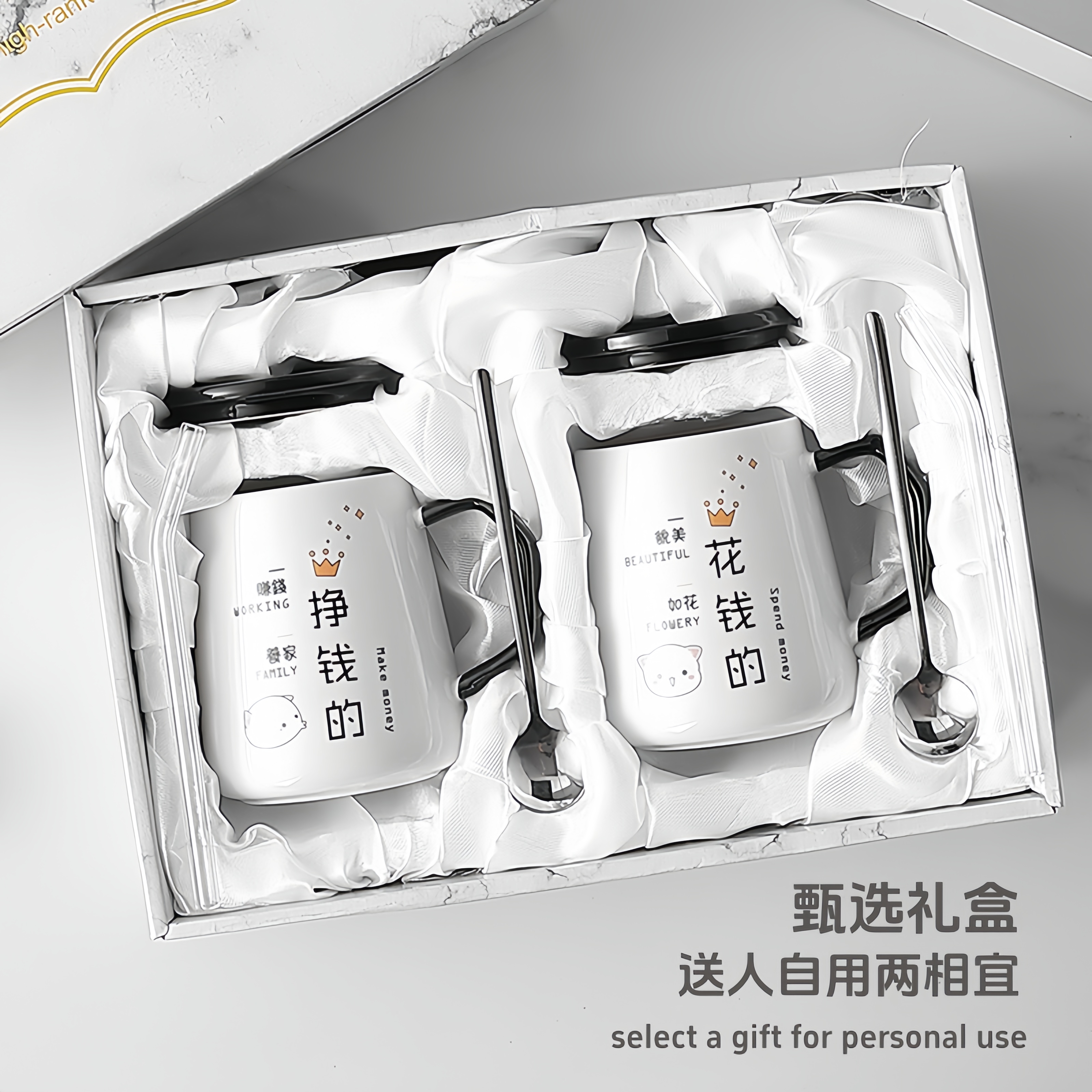 陶瓷马克杯带盖勺吸管杯大容量情侣对杯创意牛奶杯可爱高颜值水杯