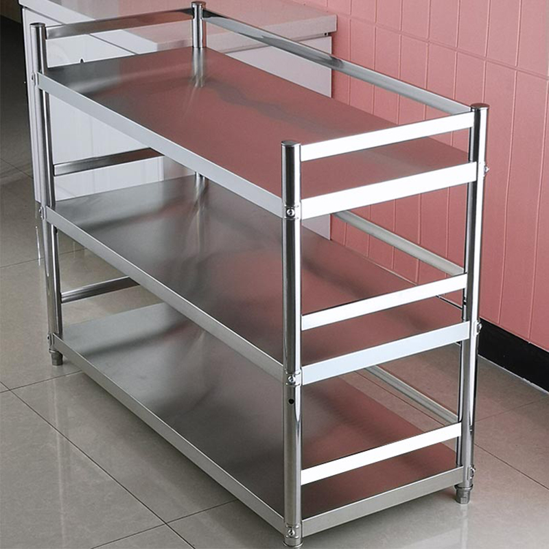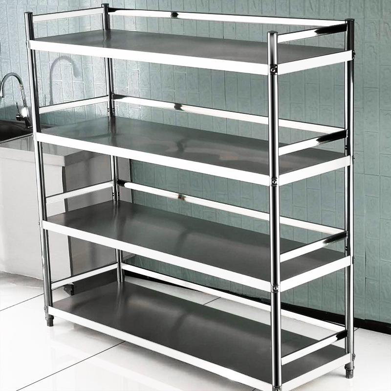 不锈钢厨房置物架落地家用放锅架子E多层微波炉烤箱护栏货架收纳