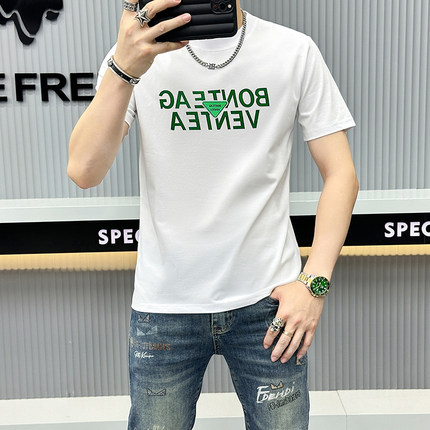 2025夏季轻奢男装欧货短袖男士新款高端潮流时尚印花圆领半袖T恤
