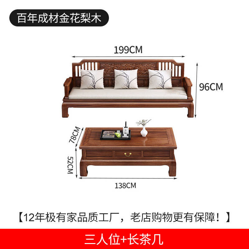 金花梨木新中式实木沙发冬夏两用仿古雕花菠萝格轻奢客厅红木家具