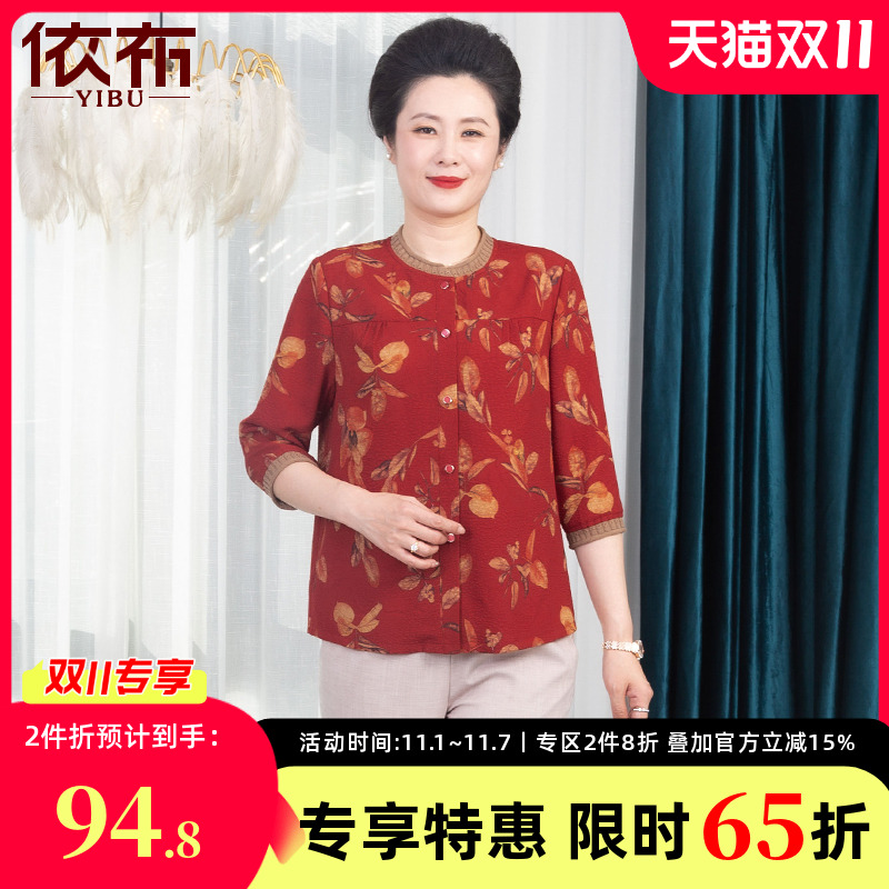 依佈中老年人2025夏装新款中袖衫妈妈装清凉雪纺衬衫奶奶大码上衣