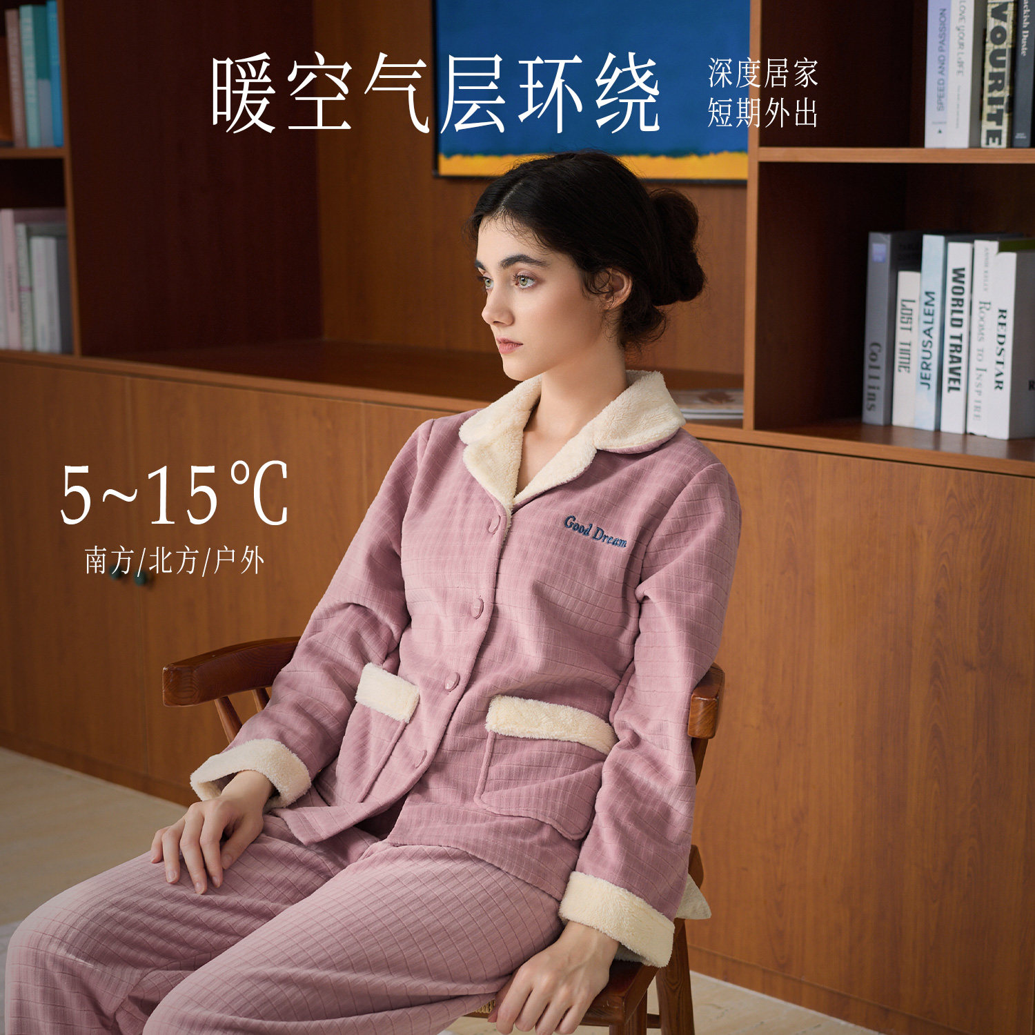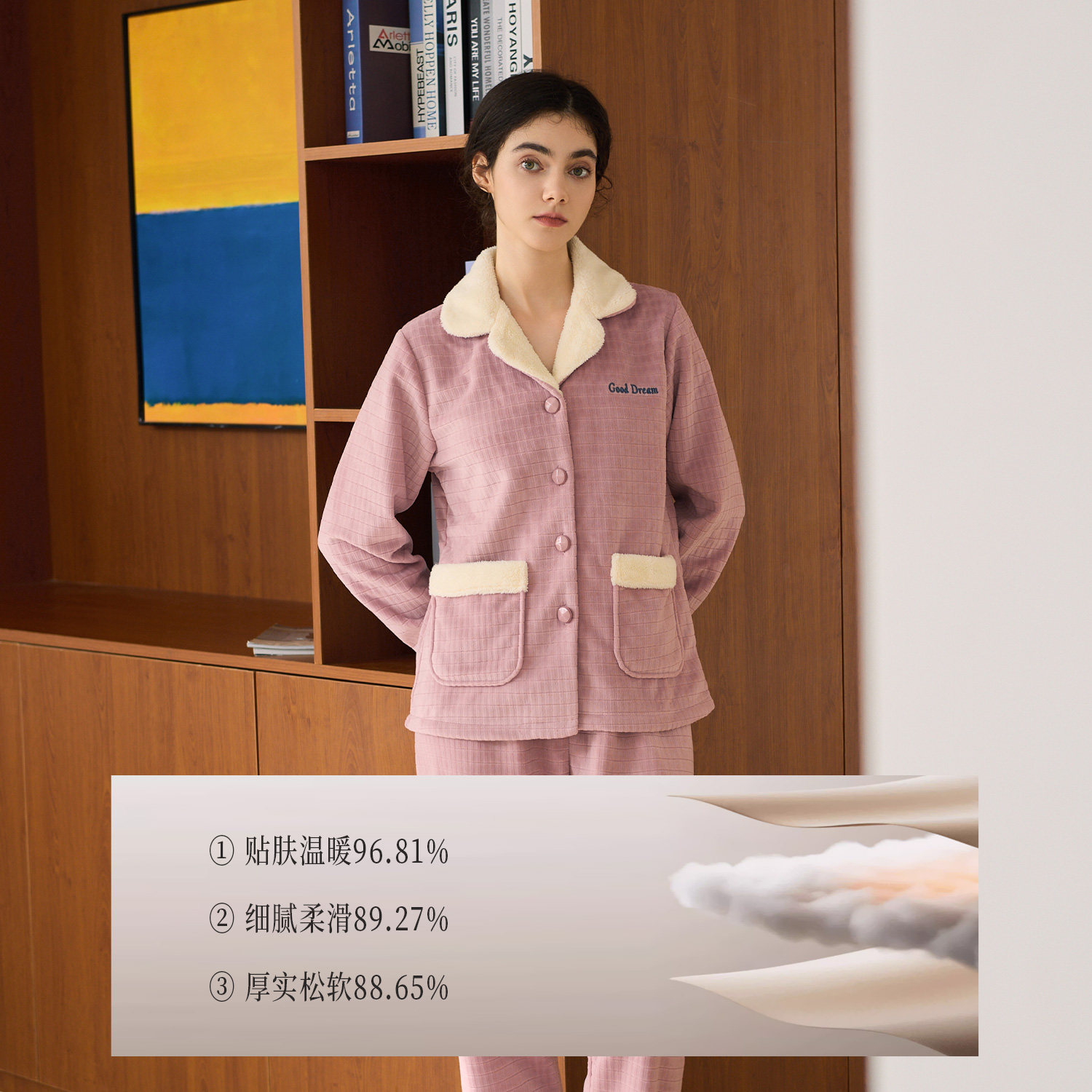 秋鹿复合珊瑚绒保暖恒温睡衣套装