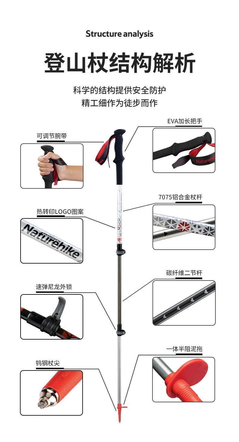 NH挪客超轻碳素登山杖185G户外登山徒步装备初雪外锁伸缩男女手杖