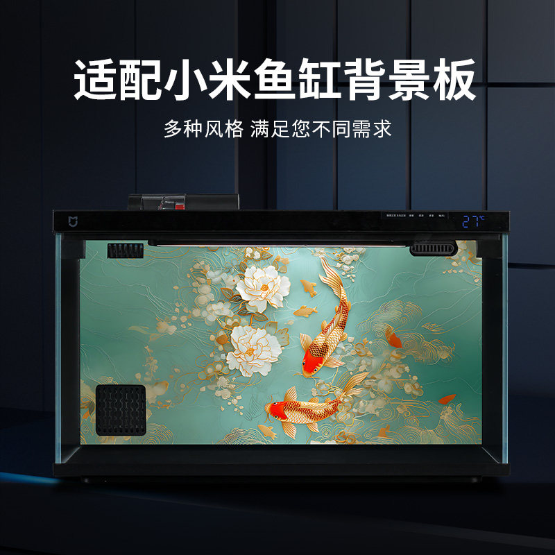 适用小米智能鱼缸背景板贴纸图画3d立体高清图造景装饰品改装改造