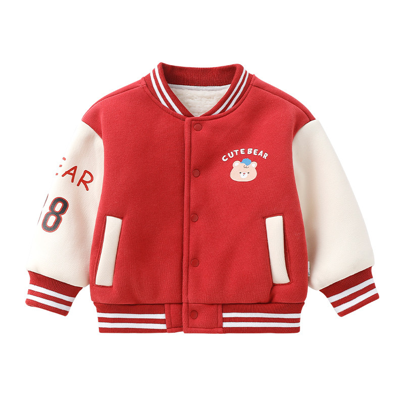 儿童冬季棒球服外套宝宝加绒棉衣秋冬款女童加厚棉服男童保暖冬装