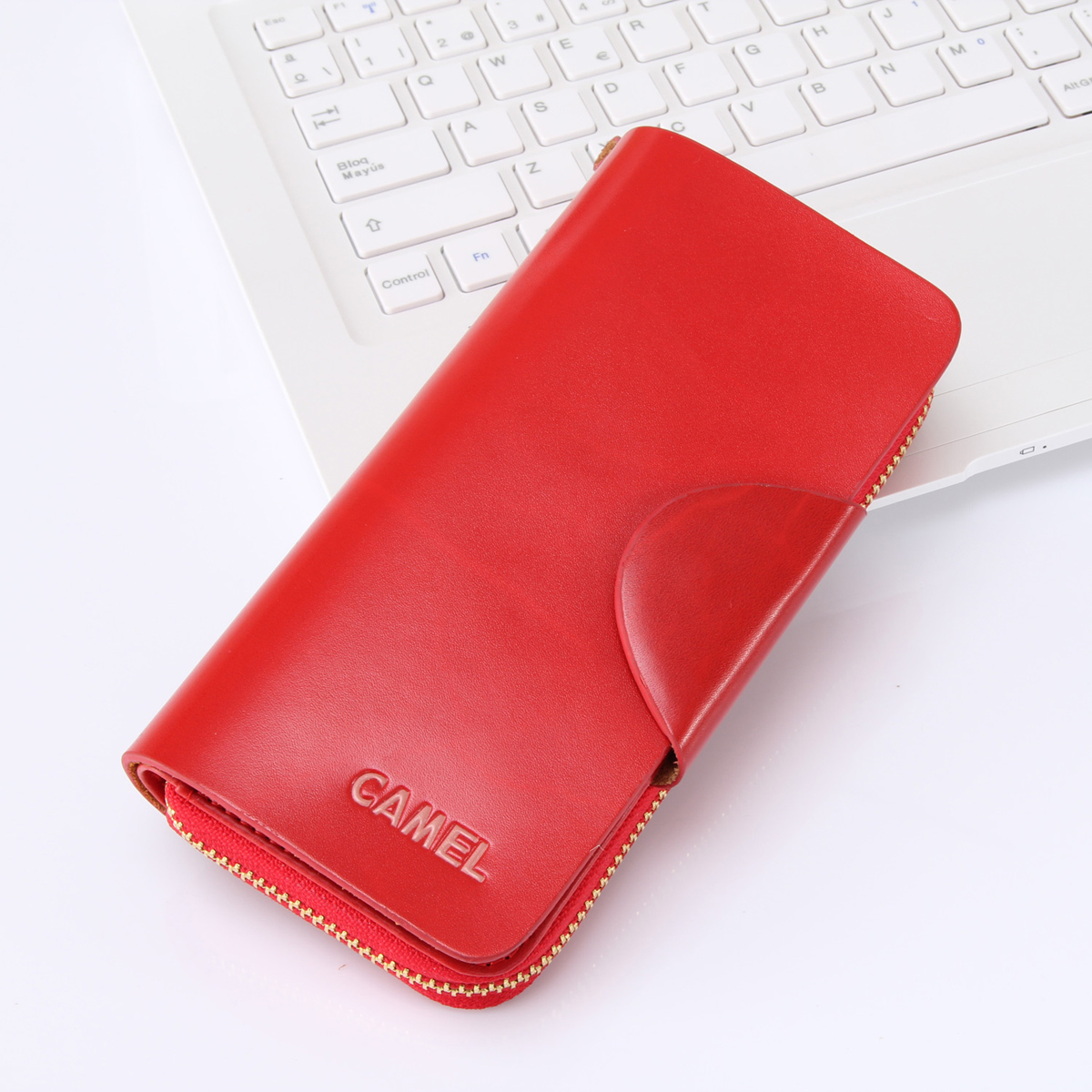 【非卖品】Camel骆驼 正品 拉链搭扣 牛皮 女士 手包 长款卡包