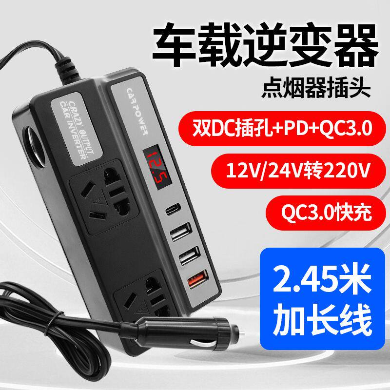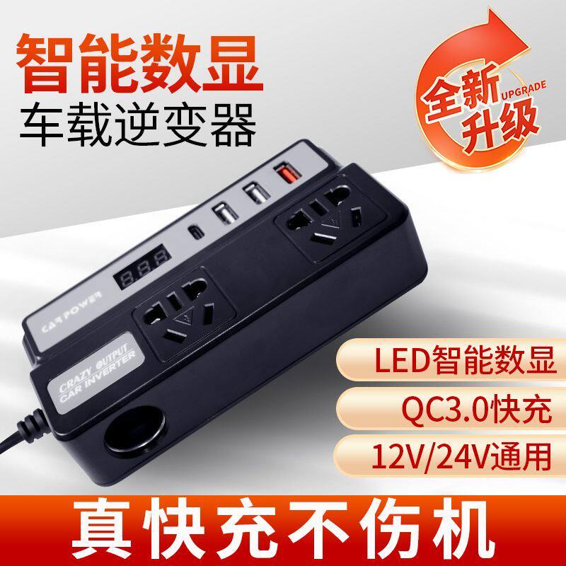 车载电瓶逆变器12V24V摩托车转220v多功能汽车手机充电器转接插头