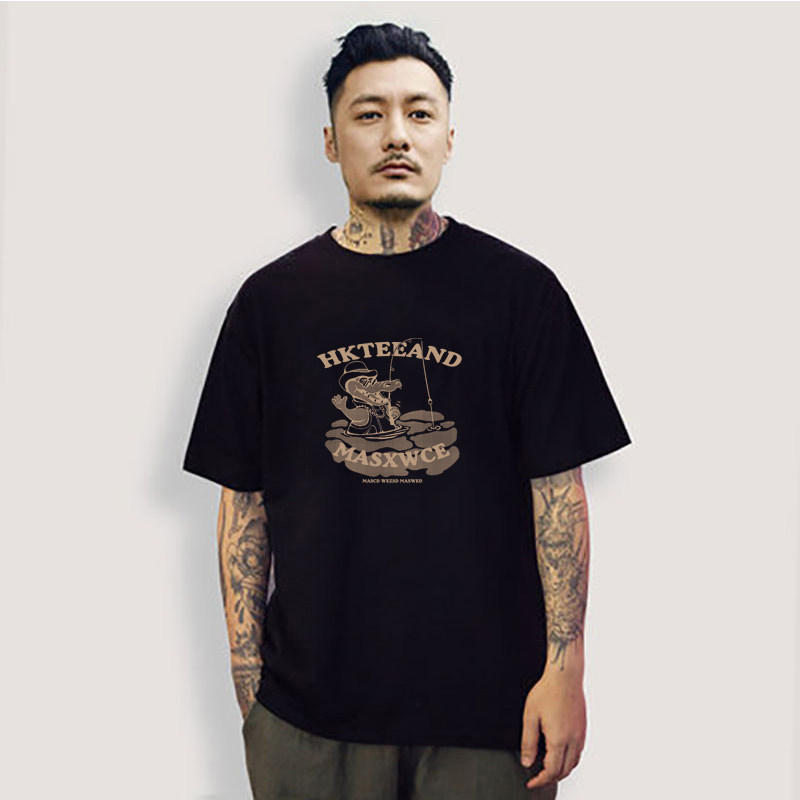 余文乐短袖t恤男美式复古潮牌黑色纯棉大码宽松休闲夏季半袖体恤