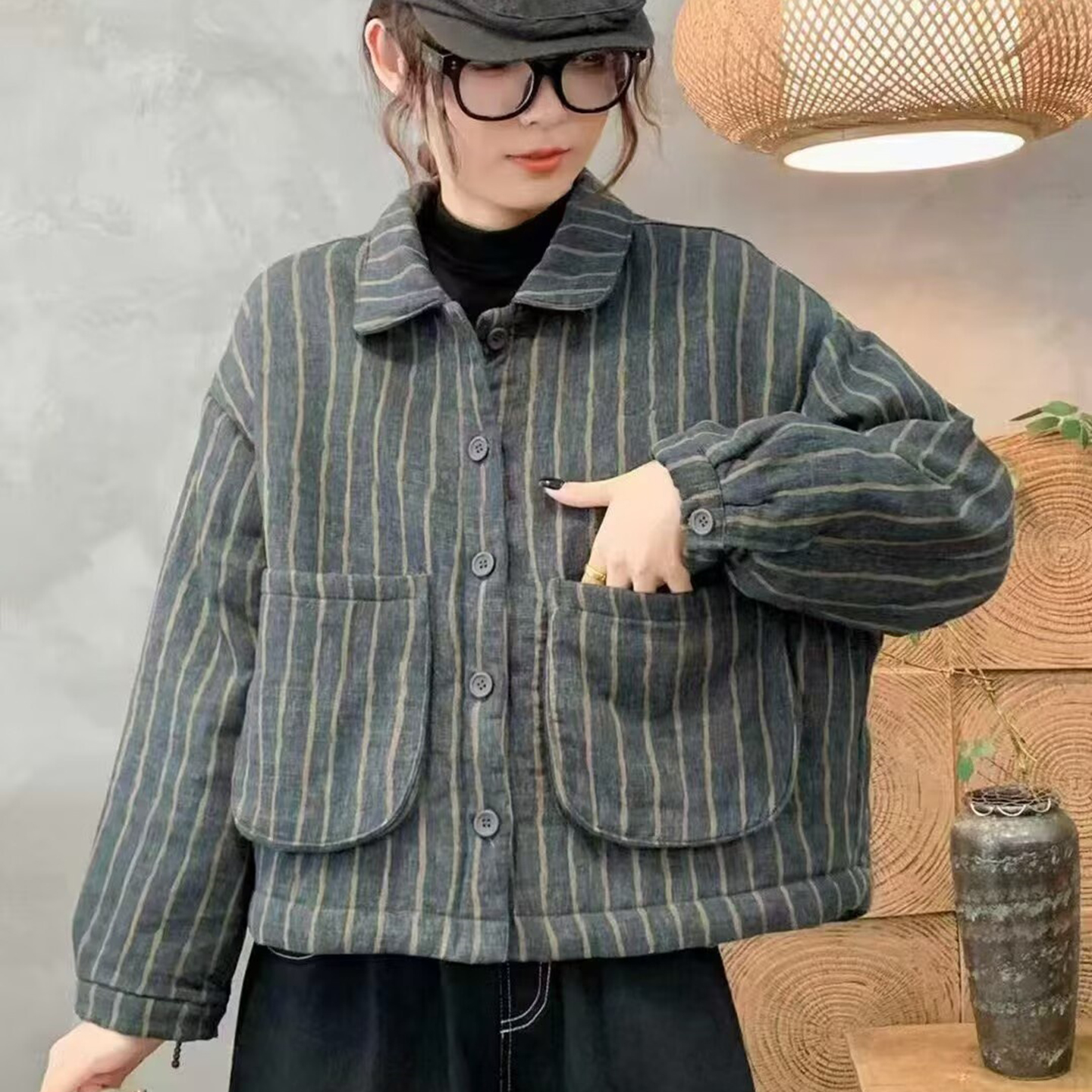 复古格子夹棉加厚短外套女冬季宽松大码休闲棉服显瘦百搭保暖棉衣