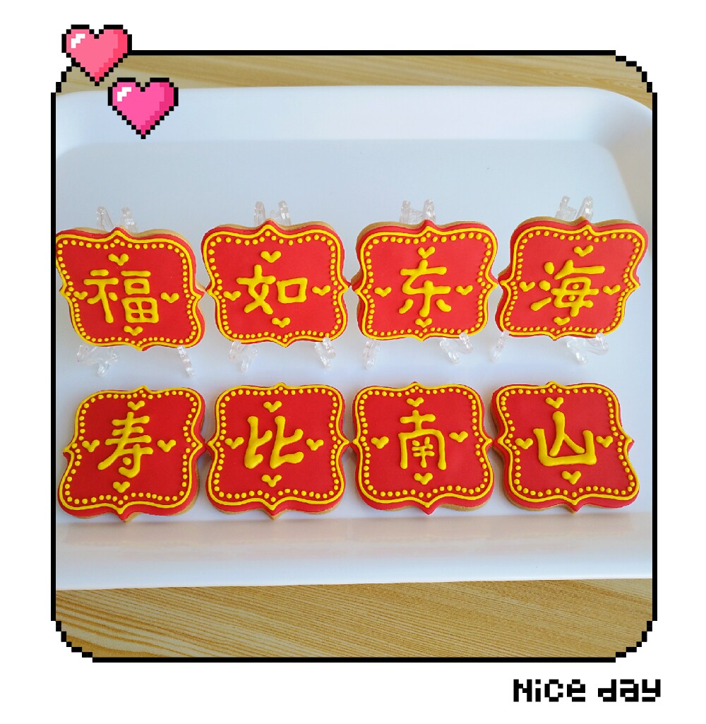 翻糖饼干中式婚礼祝寿喜饼定制手工曲奇生日甜品摆台蛋糕装饰