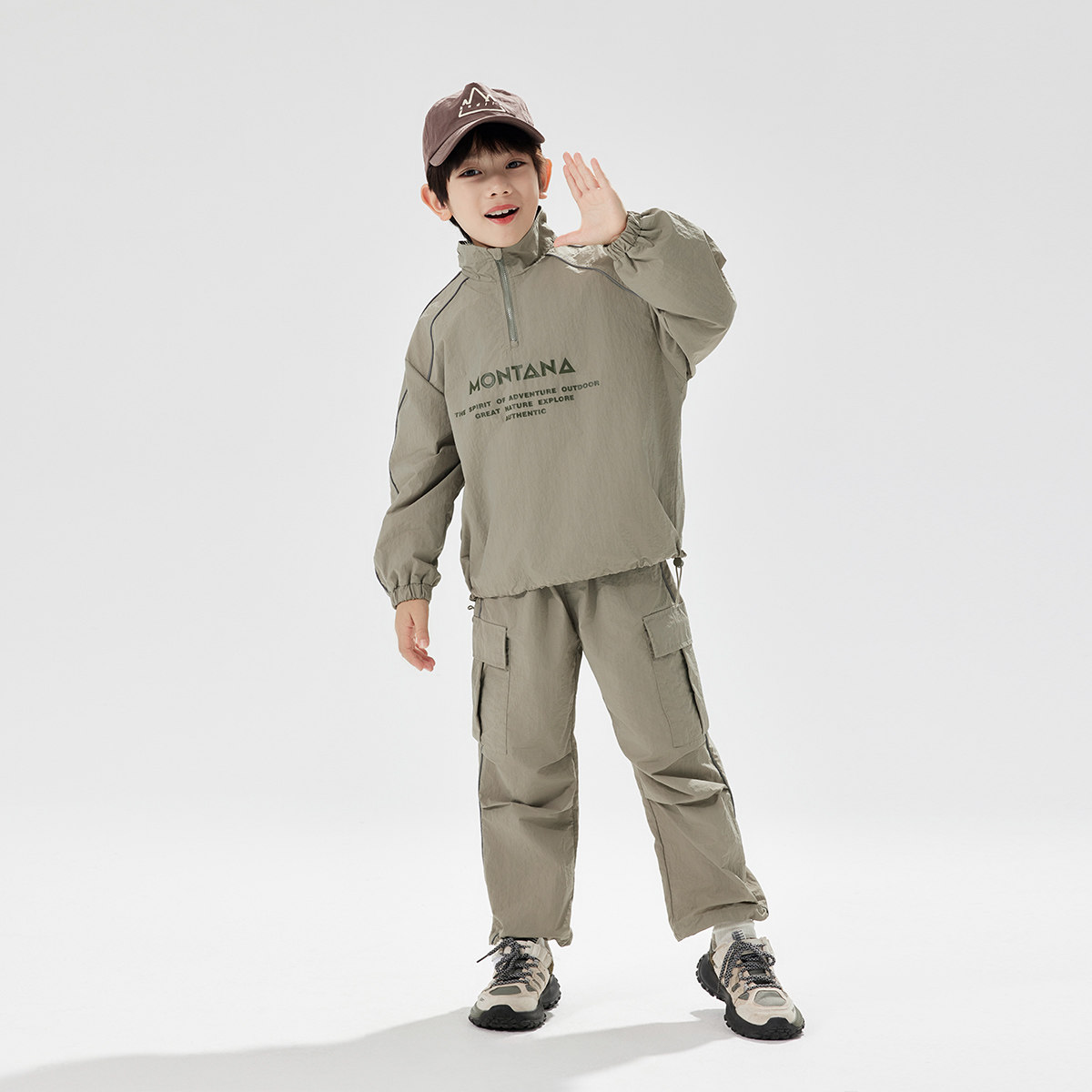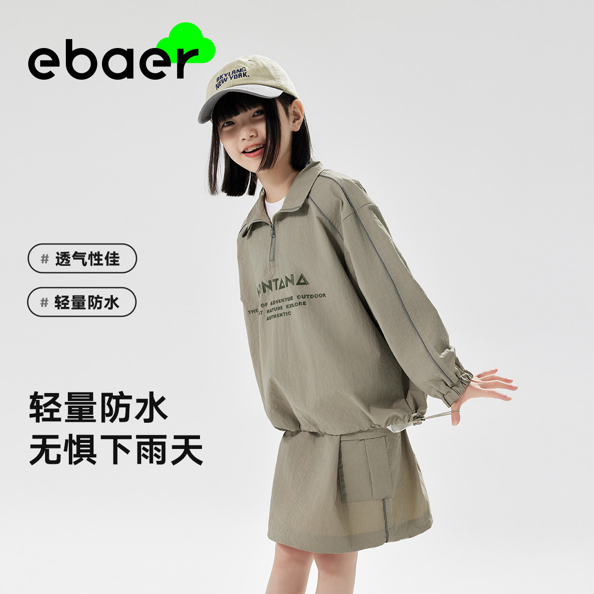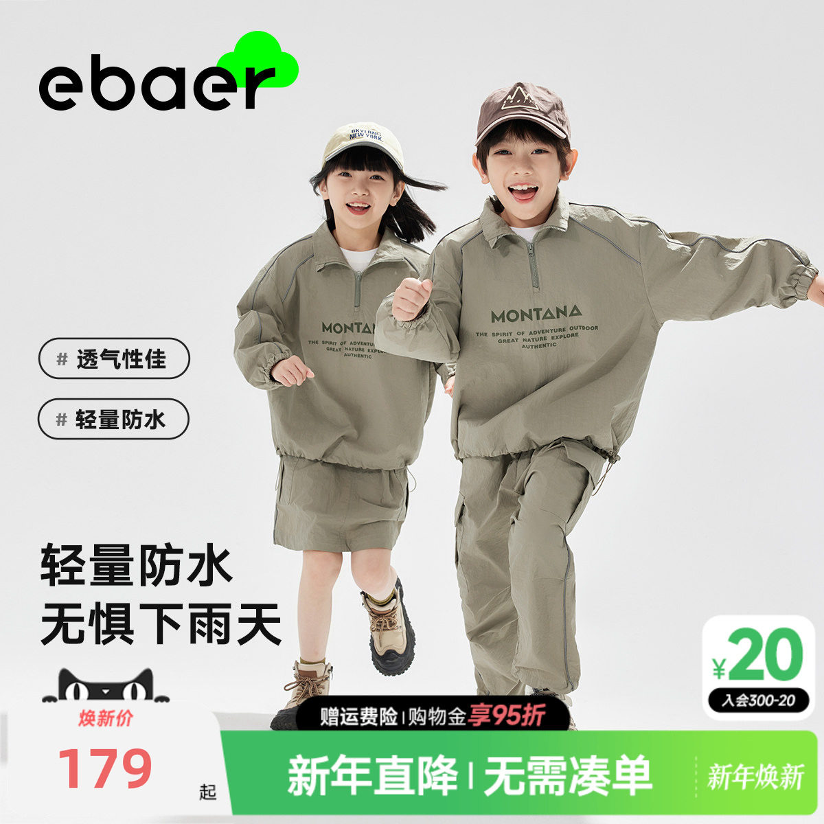 EBAER儿童春季套装户外防水2025春秋新款男童女童运动休闲两件套