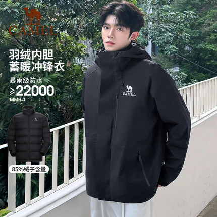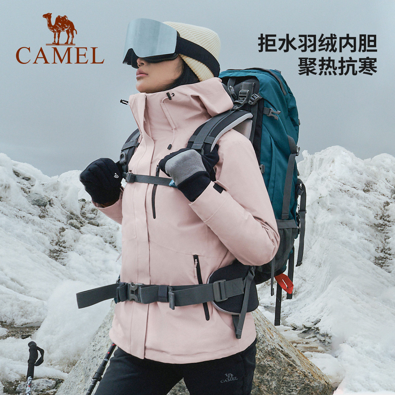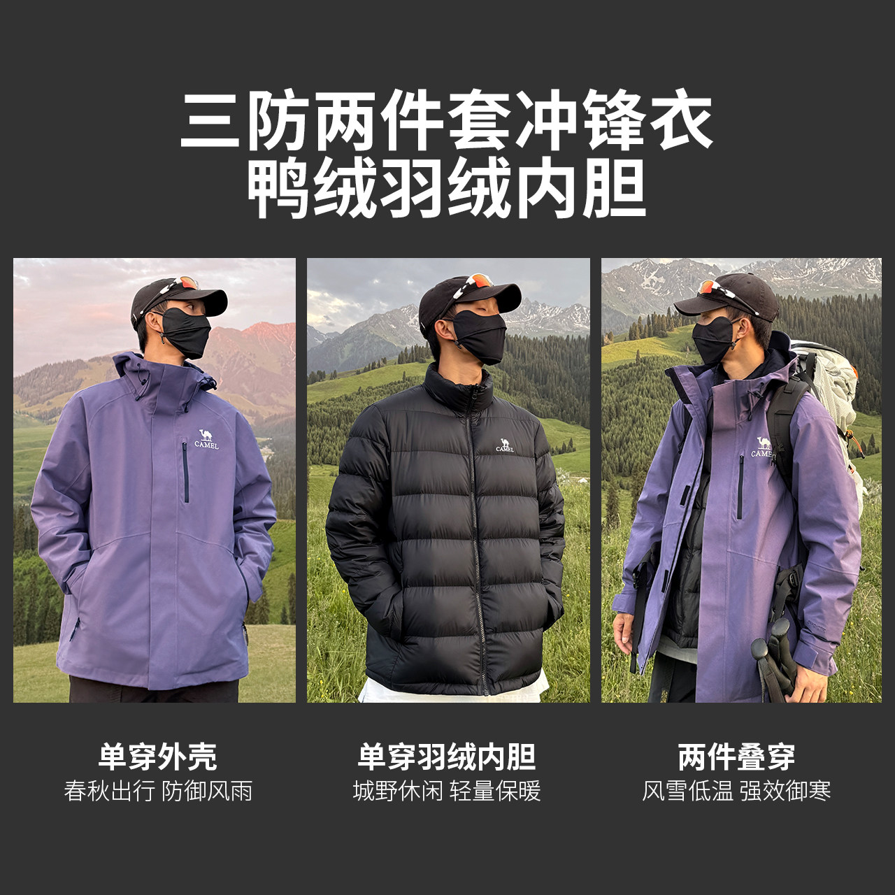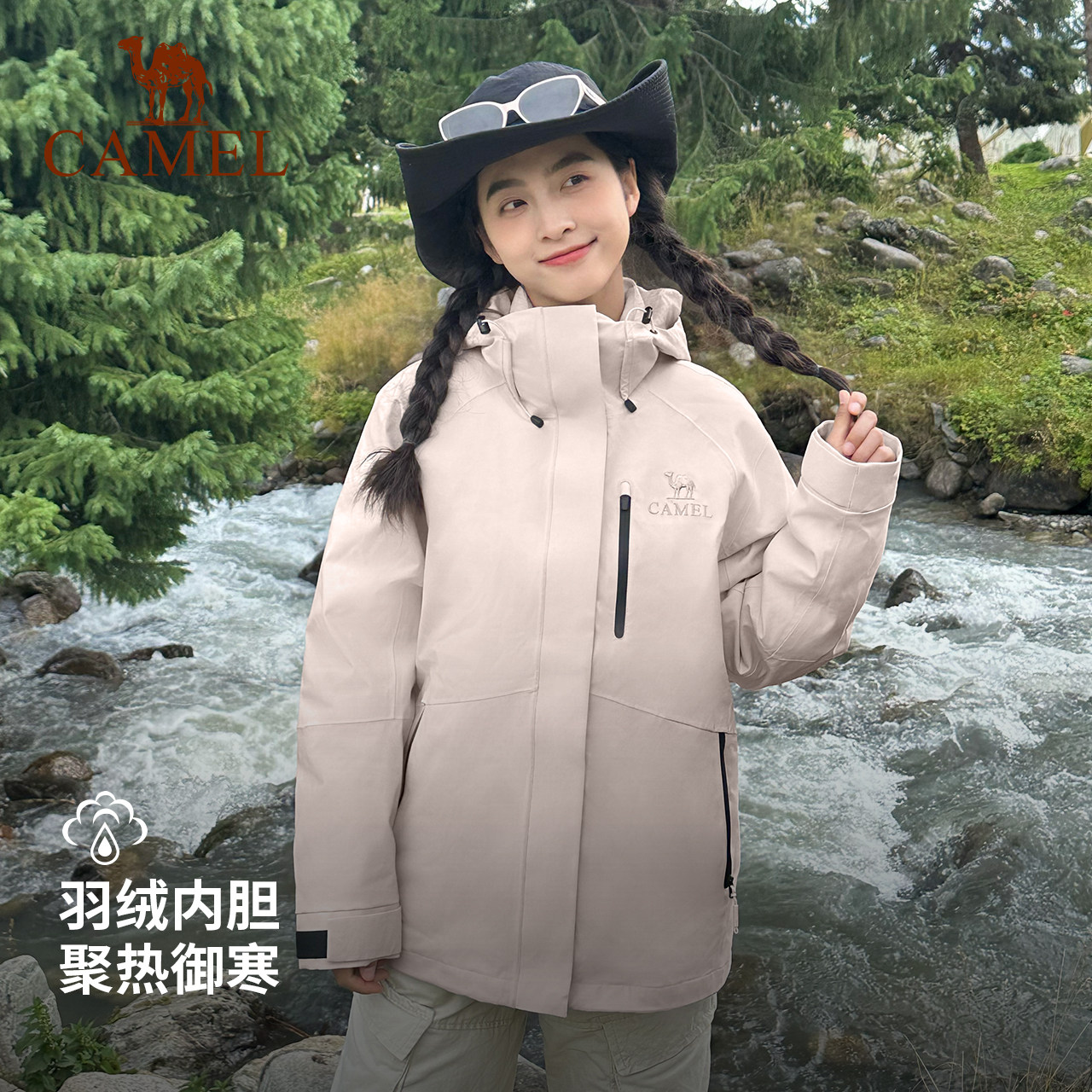 骆驼三合一冲锋衣女2025冬新户外防水防风加厚保暖外套羽绒夹克男