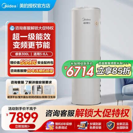 美的空气能热水器300升家用一级能效热泵电辅热变频睿泉