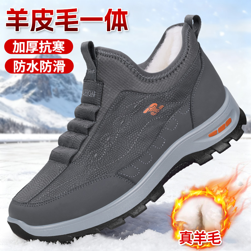 老北京布鞋男冬季保暖加绒加厚雪地靴防滑防水中老年爸爸棉鞋新款