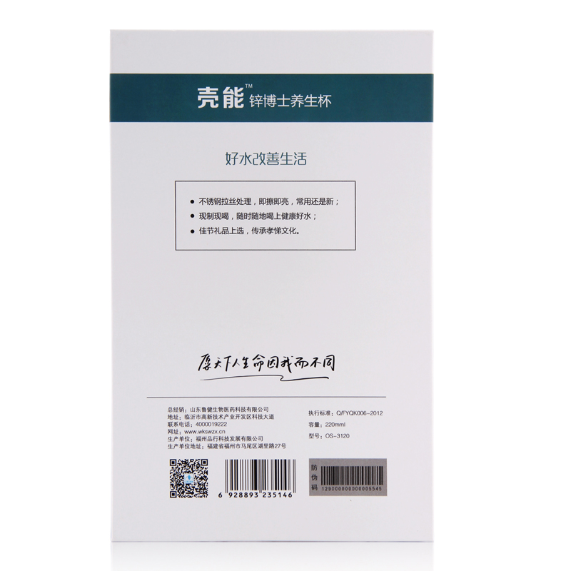 山东卫健康壳能锌博士养生杯便捷净水弱碱负电位分子不锈钢保温杯