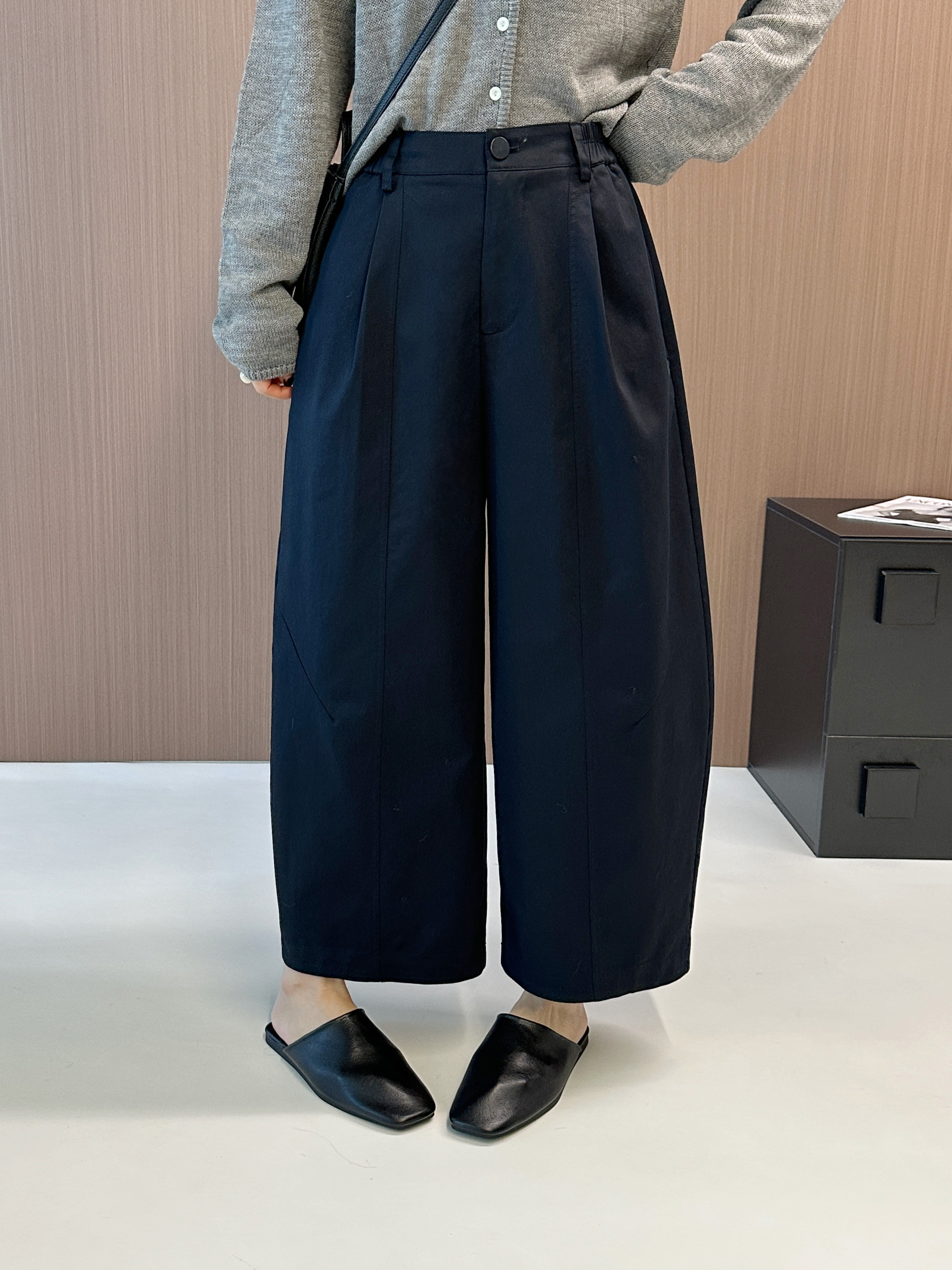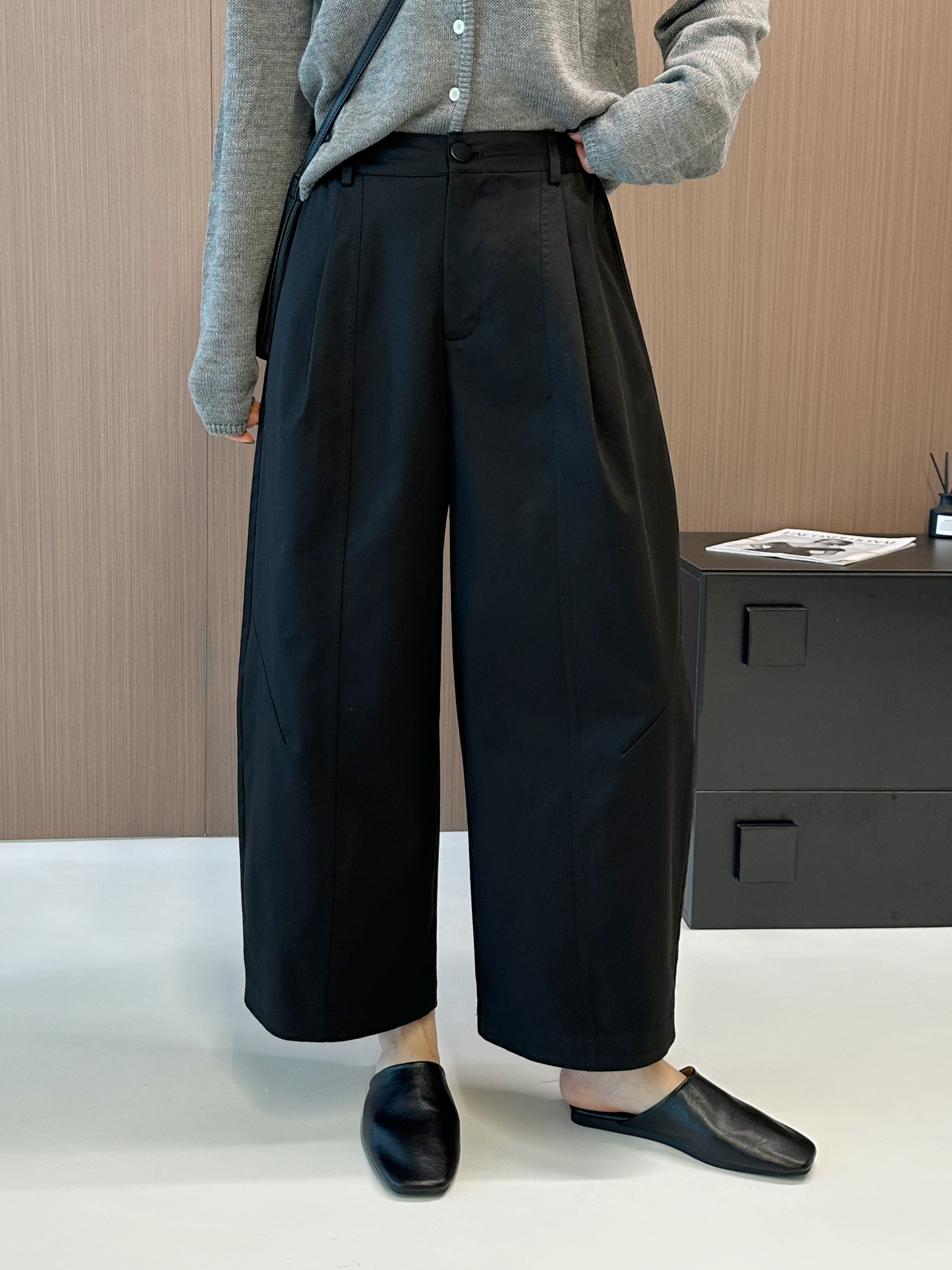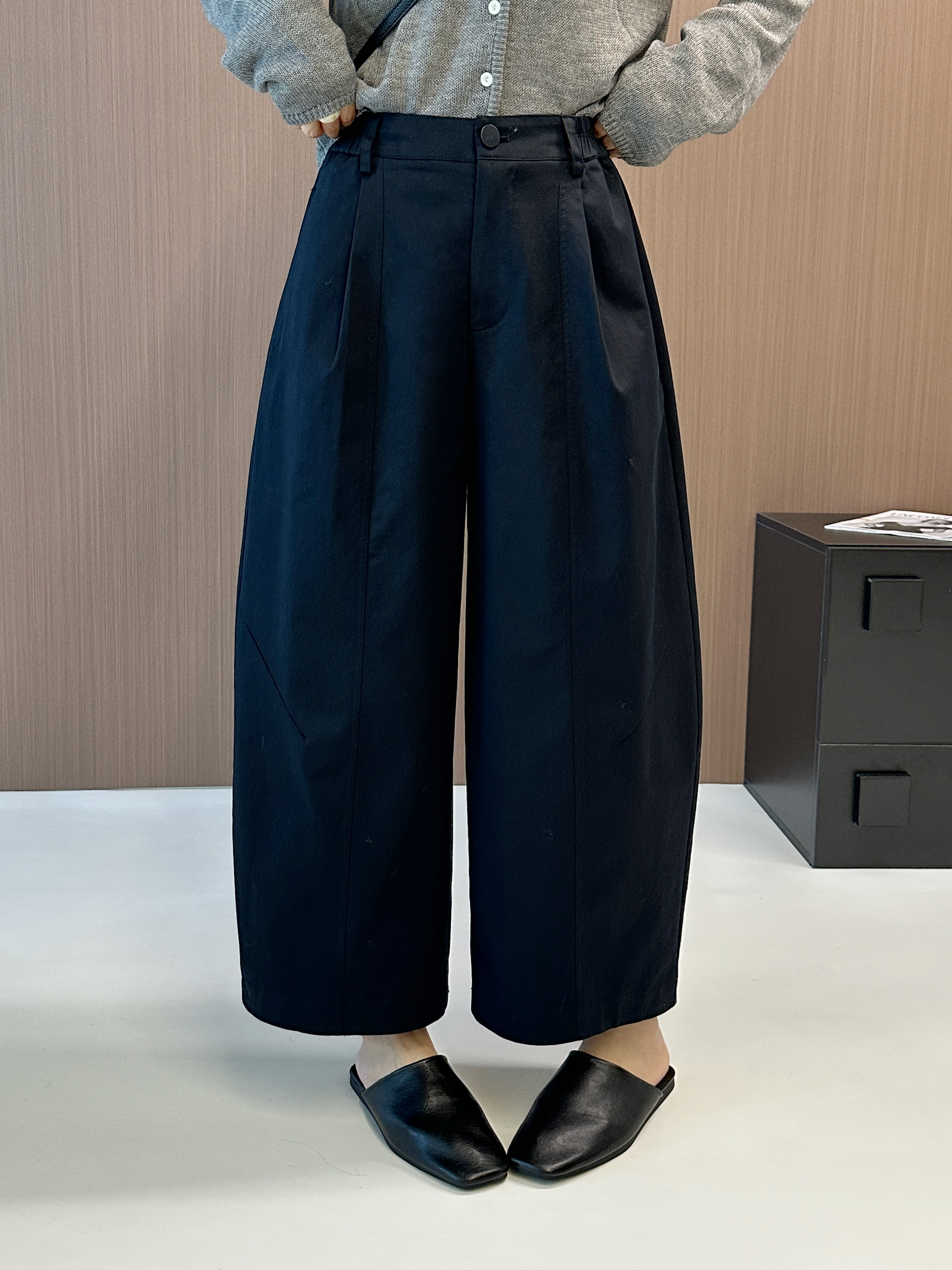 纽芮25155欧韩气球裤女高腰后松紧拉链一粒扣九分休闲阔腿哈伦裤