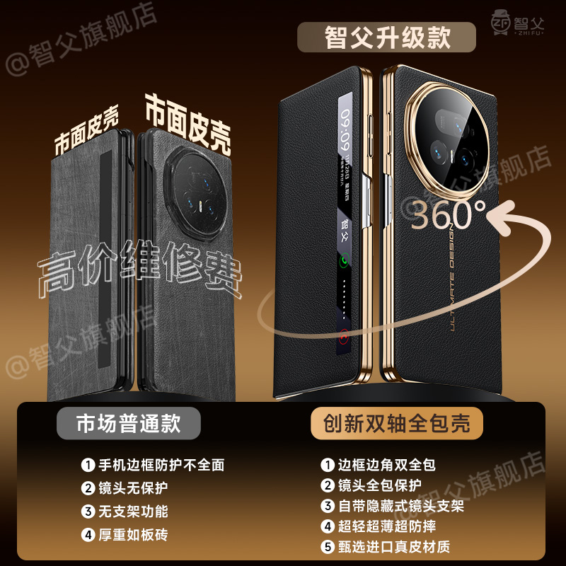 智父 适用于荣耀magicv5手机壳magic v5双边全包防摔折叠屏yl新款专用外壳华为honor轻奢高级感真皮保护套男