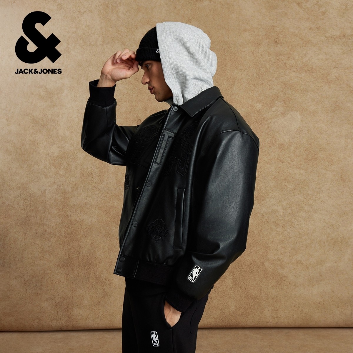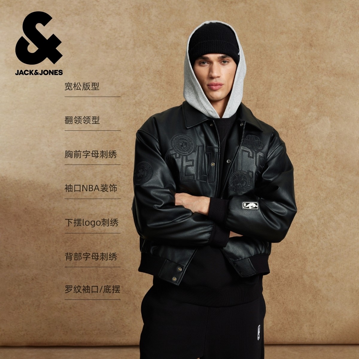 杰克琼斯奥特莱斯NBA联名男装棉衣冬季新款刺绣翻领宽松外套