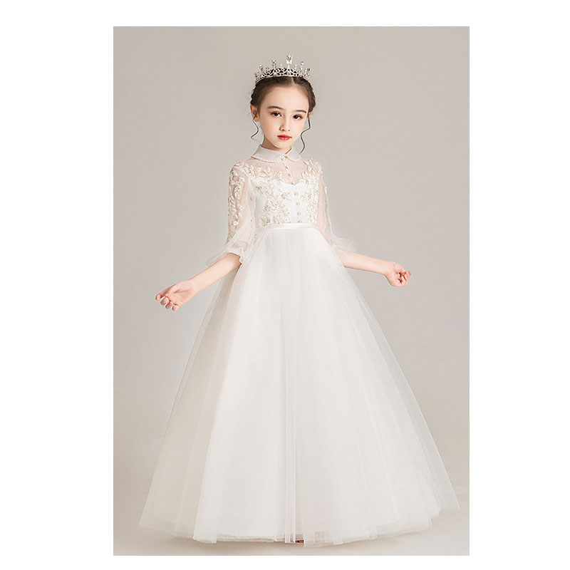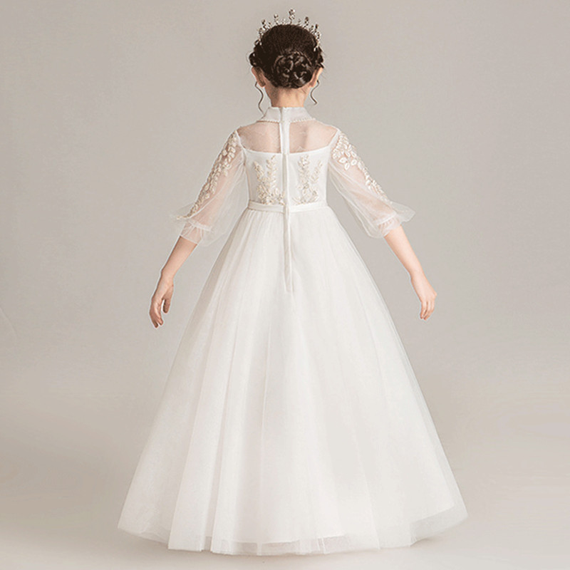 高端女童白色纱裙连衣裙大码儿童礼服公主裙中大童演出服蓬蓬长裙