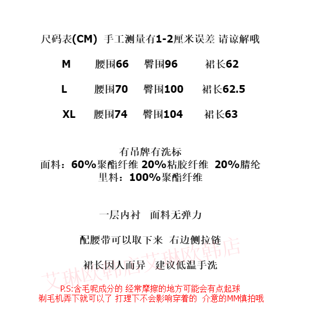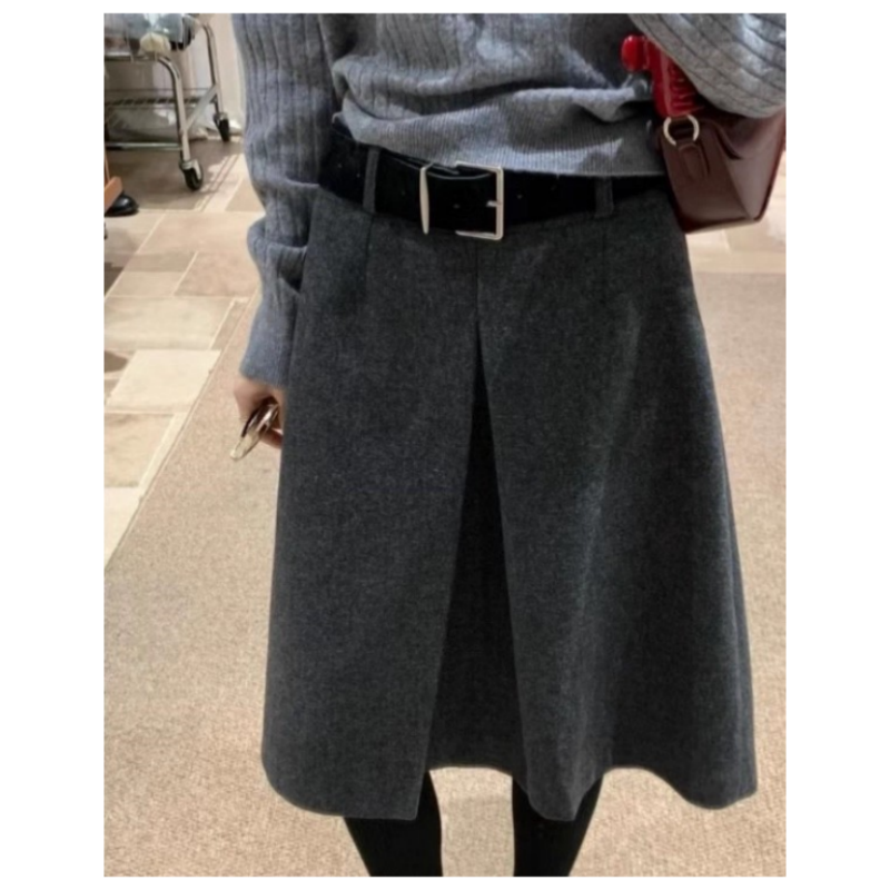 11.6~土布鱼7221冬季配腰带韩系百搭中长款加厚毛呢A字半身裙女