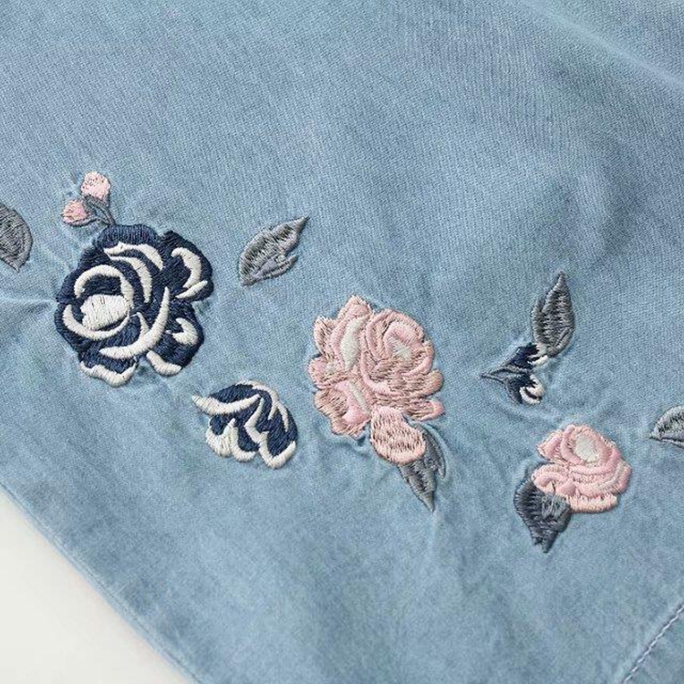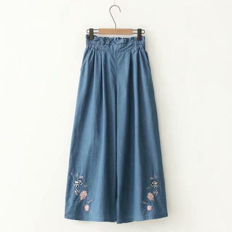 外贸女装2019春季新款松紧高腰文艺绣花天丝牛仔裤宽松休闲阔腿裤
