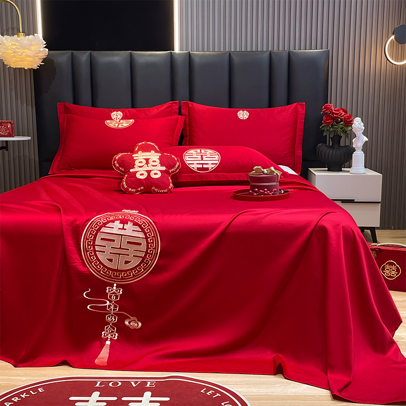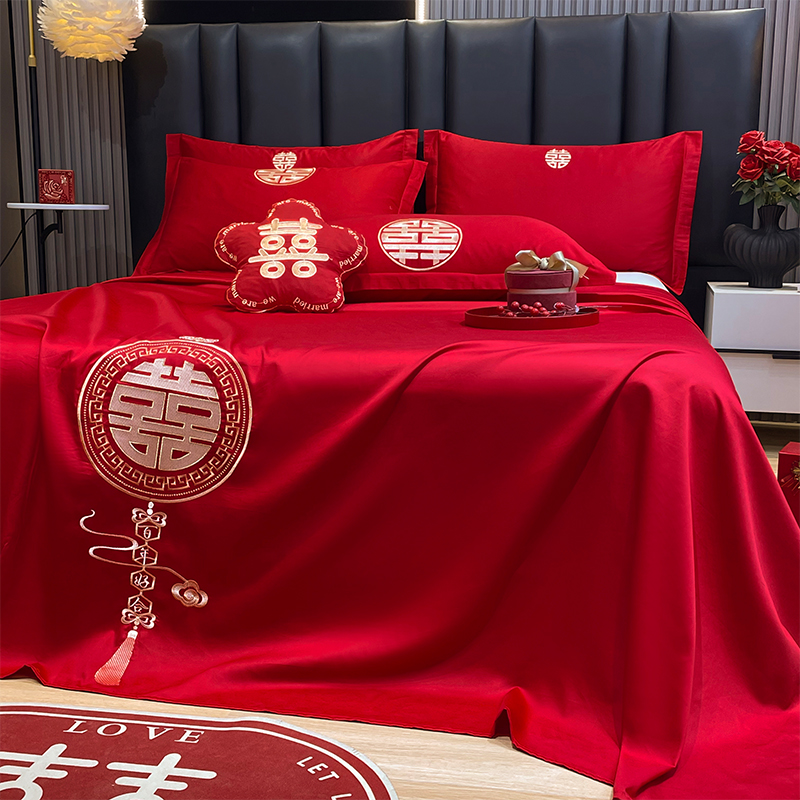 婚庆床单单件大红喜庆新结婚房礼床上三件套新娘女方中式陪嫁龙凤