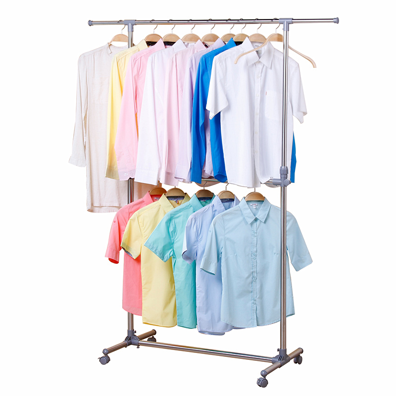 友利特晾衣架落地单杆式伸缩挂衣架室内阳台双杆不锈钢衣服晾晒架