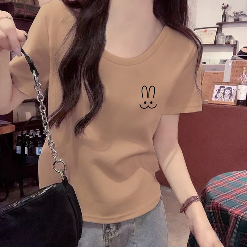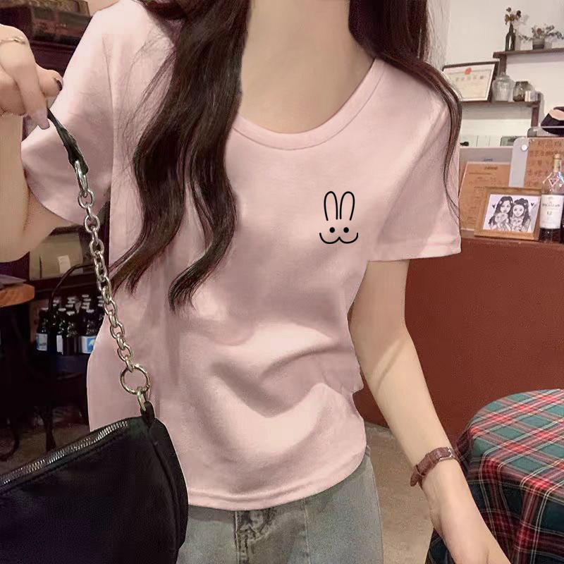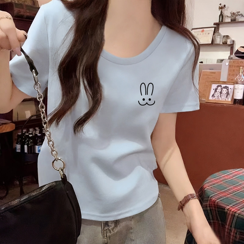欧货女装2026夏季新款纯棉白色U领短袖印花t恤女宽松显瘦百搭上衣