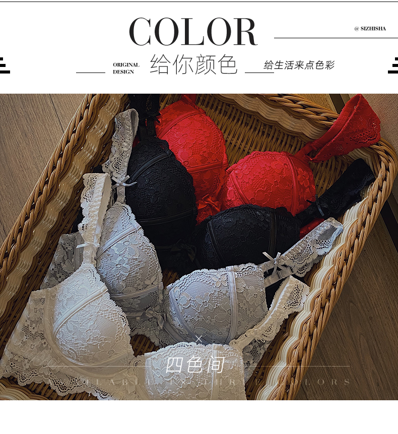 内衣女无钢圈小胸聚拢收调整型副乳胸罩性感蕾丝文胸套装夏季白色