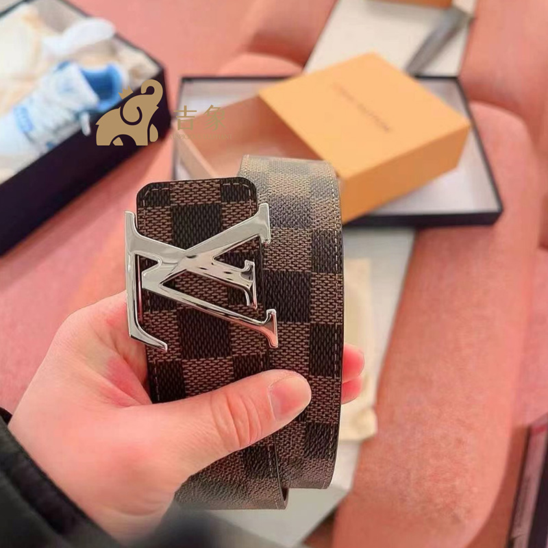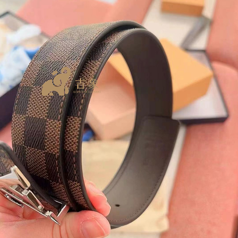 LV路易威登男士经典棕色棋盘格帆布牛皮双面腰带皮带4CM