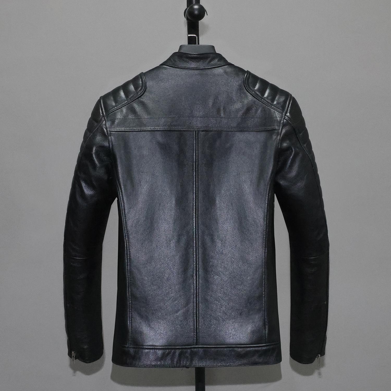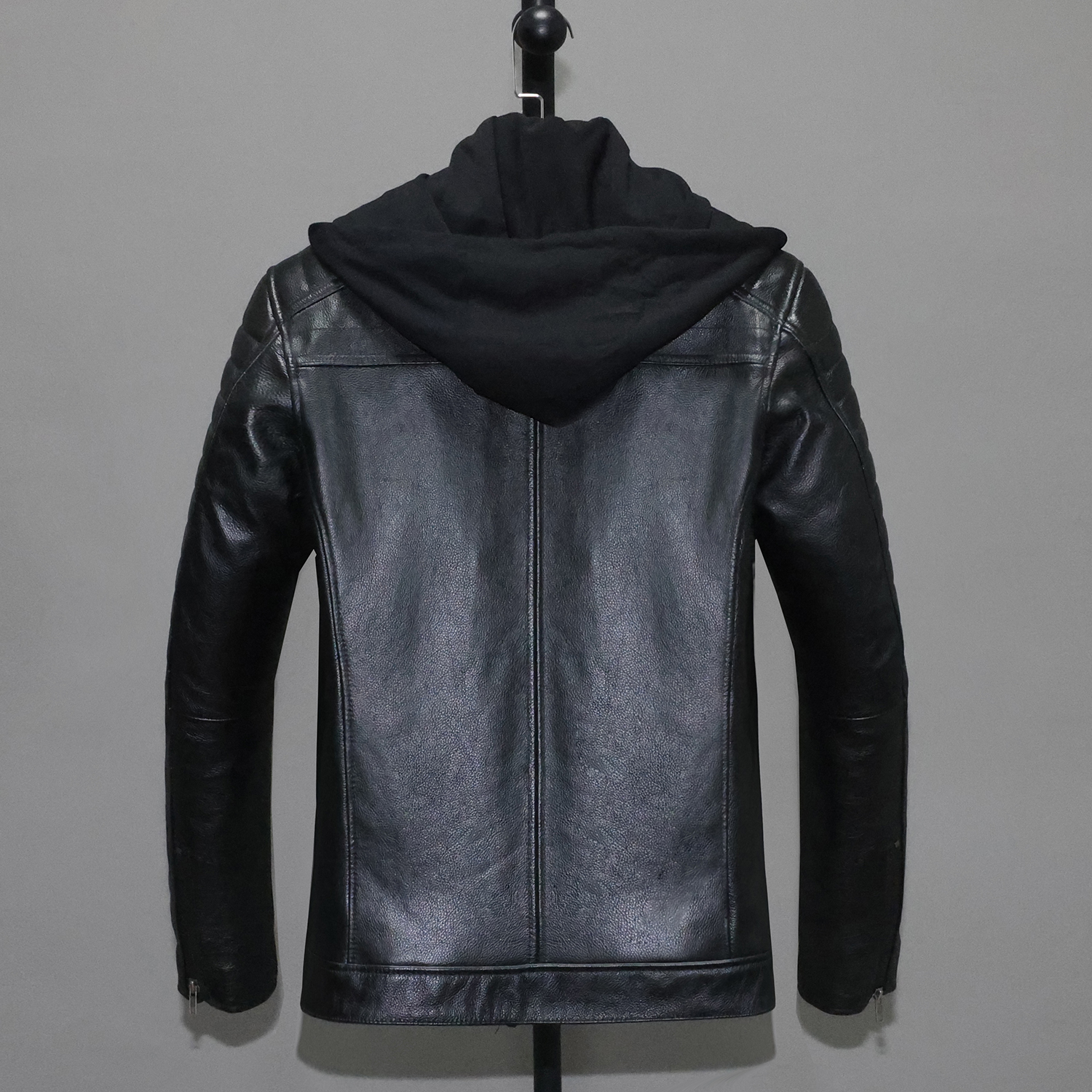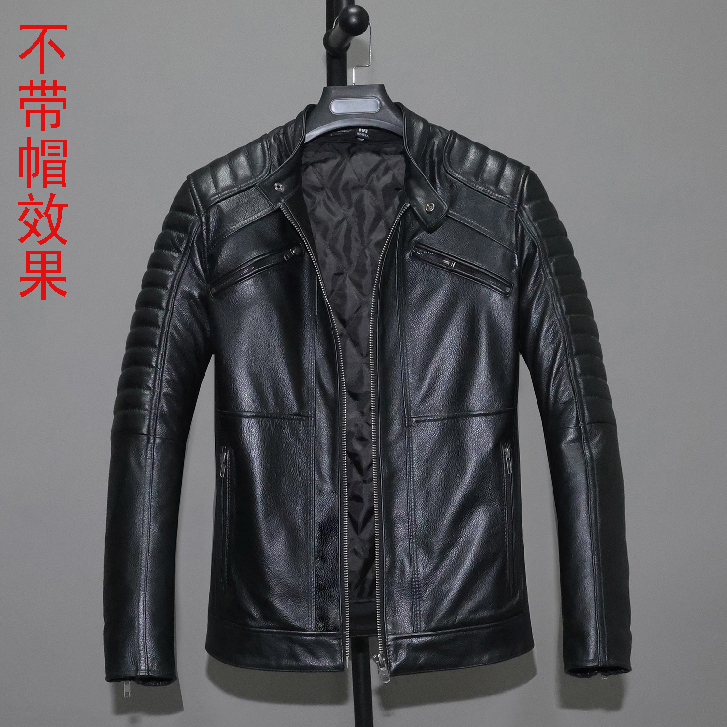 欧美风头层牛皮机车夹克加棉真皮皮衣男修身可脱卸帽棉内胆外套巽